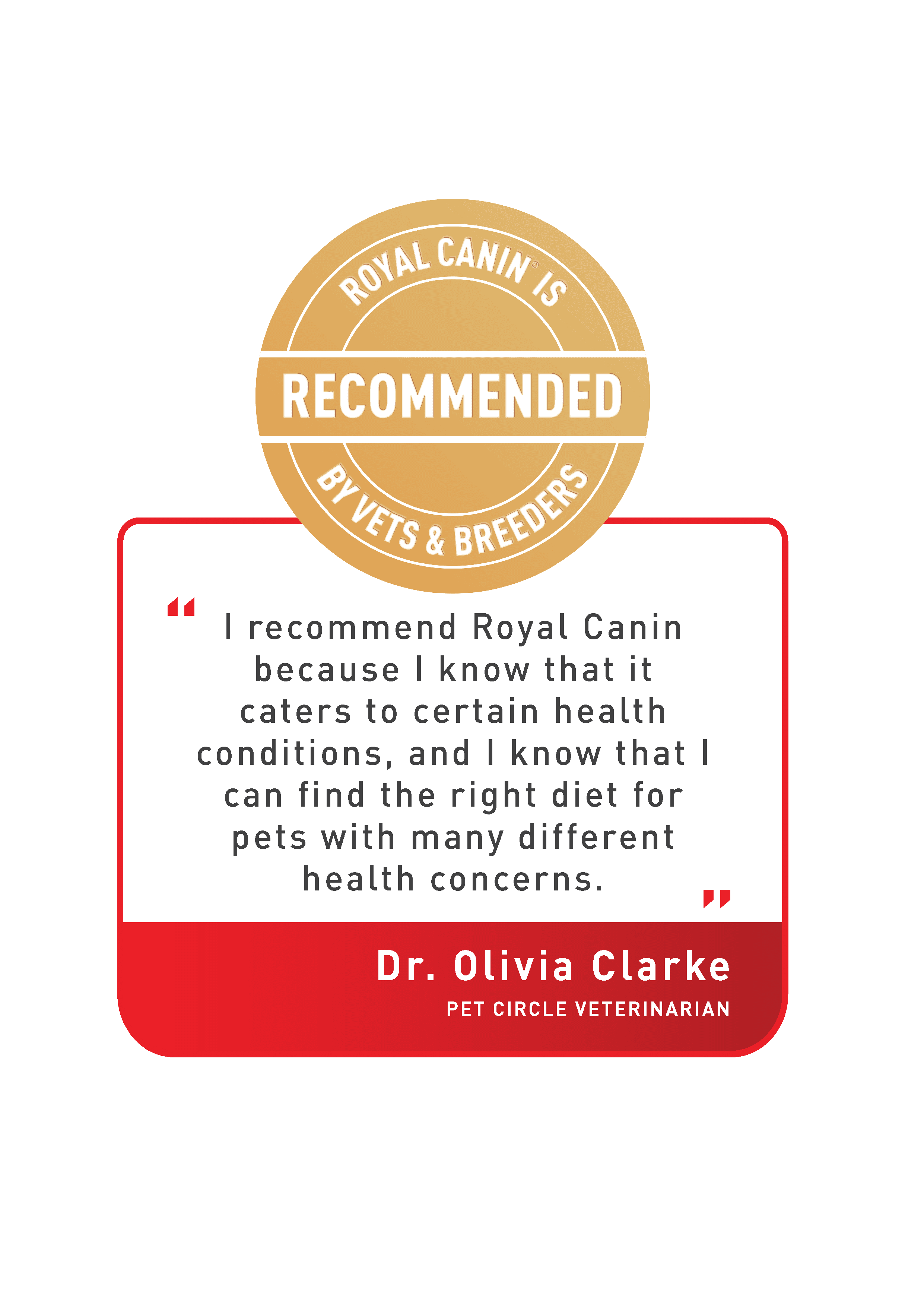 COMPOSITION Meat and animal derivatives (pork, poultry), cereals, sunflower oil, minerals, powdered cellulose, amino acids, algal oil, vitamins, tomato powder, fish oil, gelling agents, yeasts, glucosamine, marigold meal, fructo-oligosaccharides, hydrolysed pork cartilage (source of chondroitin 0.002%). ADDITIVES (PER KG) Nutritional additives: Vitamin D3: 310 IU, Vitamin E: 105 mg, Vitamin C: 85 mg, Taurine: 1.1 g, Tryptophan: 1.4 g, Iron: 7 mg, Iodine: 0.3 mg, Copper: 2 mg, Manganese: 2 mg, Zinc: 20 mg. Sensory additives: Flavourings. Royal Canin is committed to ensuring scientifically accurate product information. While details are correct at the time of publication, product updates may occur at short notice due to ingredient availability or changes in our supply network. As a result, there may be some delays in updating digital materials. Always check on-pack information.