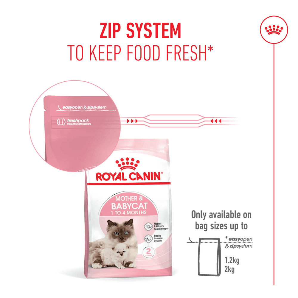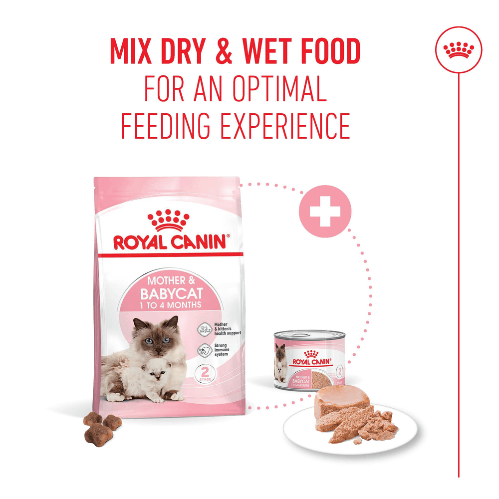 ROYAL CANIN Mother and Baby Dry Cat Food is specially designed to support both mother cats and their kittens during the crucial early stages of life. This highly digestible formula provides essential nutrients for pregnant and lactating queens and growing kittens, promoting a strong immune system, brain development, and easy transition to solid food.