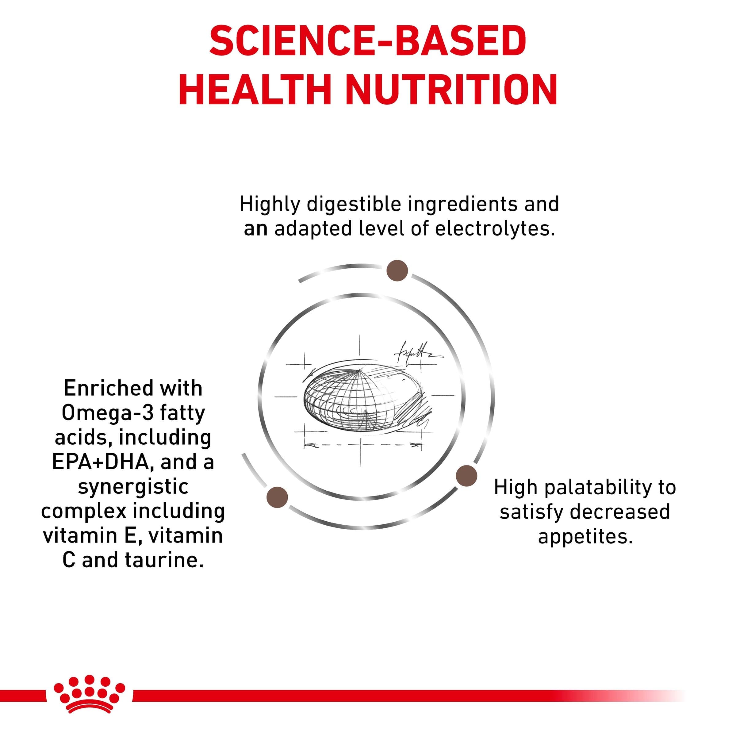Composition: Rice, dehydrated poultry protein, maize, animal fats, hydrolysed animal proteins (poultry, fish), egg powder, yeasts products, beet pulp, soya oil, fish oil, vegetable fibres, minerals, psyllium husks and seeds, fructo-oligosaccharides (0.5%), hydrolysed yeast (source of mannan-oligosaccharides) (0.2%), marigold extract (source of lutein). Additives (per kg): Nutritional additives: Vitamin A: 16500 IU, Vitamin D3: 1000 IU, Iron: 41 mg, Iodine: 4.1 mg, Copper: 12 mg, Manganese: 53 mg, Zinc: 129mg, Selenium: 0.07 mg - Technological additives: Clinoptilolite of sedimentary origin: 5 g - Preservatives - Antioxidants Please Note: Royal Canin takes pride in ensuring the scientific reliability of all product information. The information in this product listing was true and accurate at the time of publication. However, please note that from time to time, for example due to ingredient availability or a change in sourcing factory within our global factory network for the purpose of ongoing supply, it is necessary to make product changes at short notice, and there may be some delays in updating the information in our product materials.