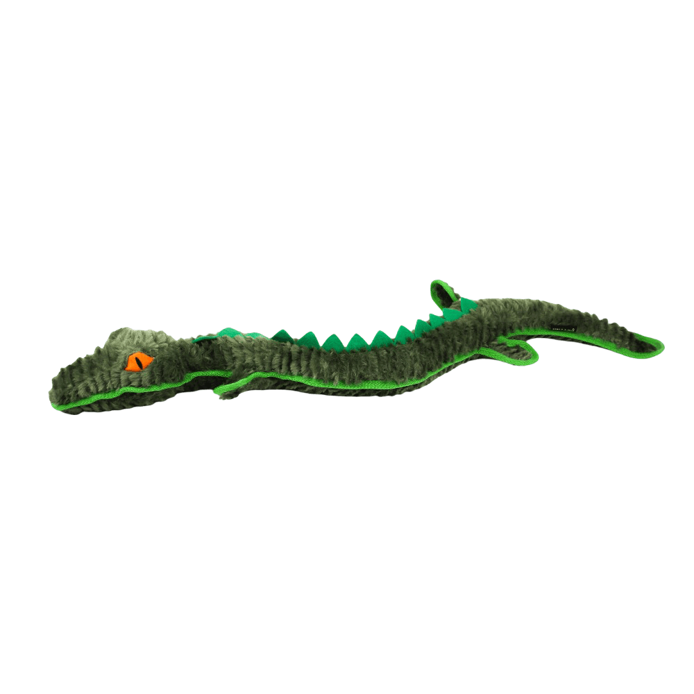 This durable plush toy is shaped like a formidable crocodile, designed to withstand the enthusiastic play of most dogs. Crafted to endure, this plaything is more resistant, ensuring countless hours of fun without quickly wearing down.