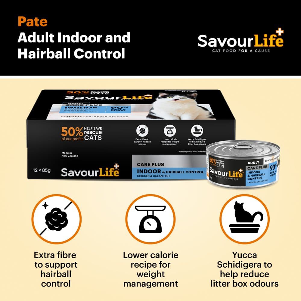 SavourLife Indoor And Hairball Control Chicken Ocean Fish Adult Wet Cat Food Cans