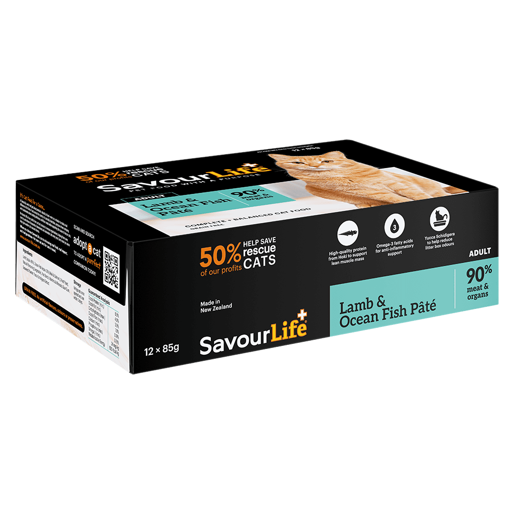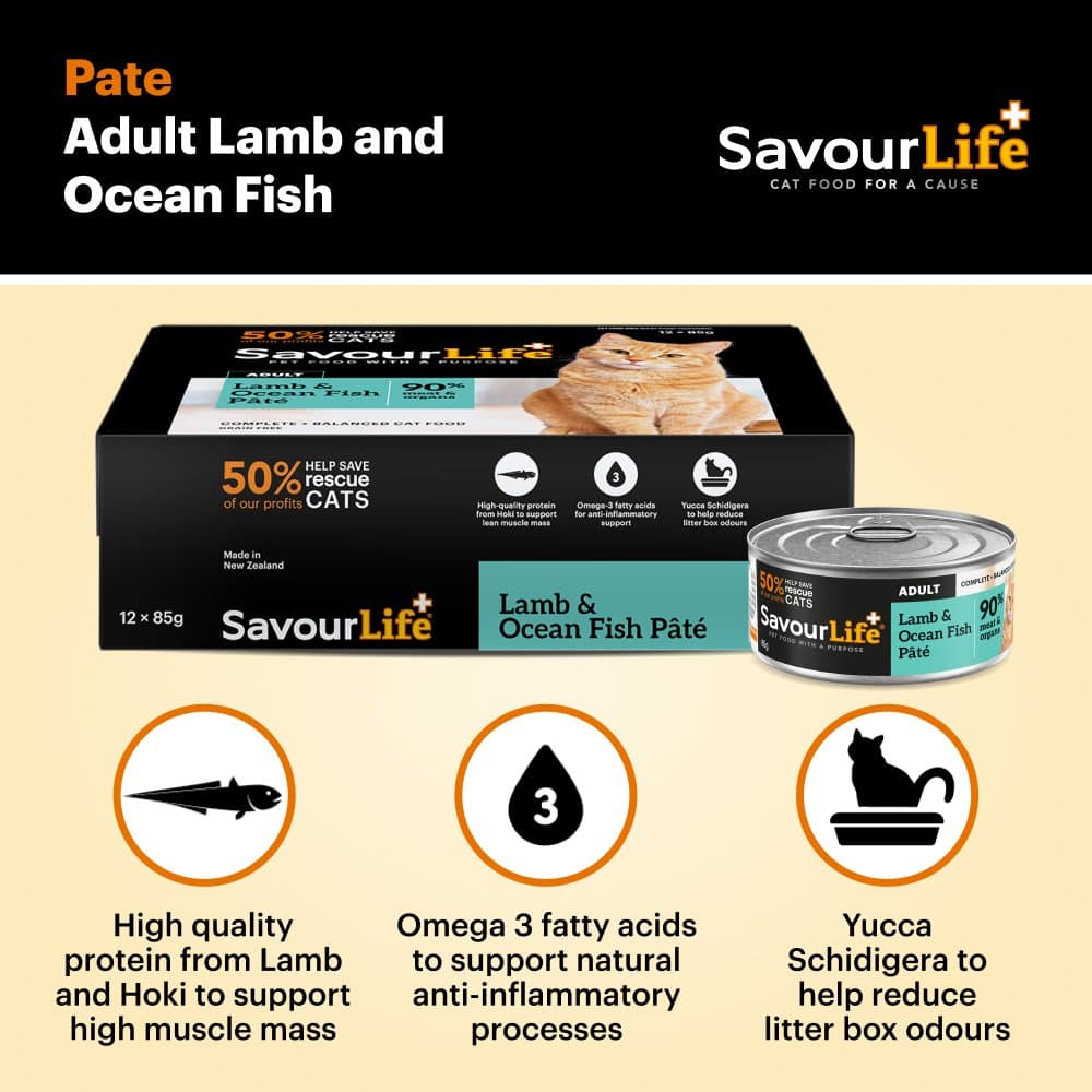 - Every can of SavourLife Lamb And Ocean Fish Adult Wet Cat Food is fortified with essential vitamins, minerals, and natural seaweed powder to deliver comprehensive nutrition