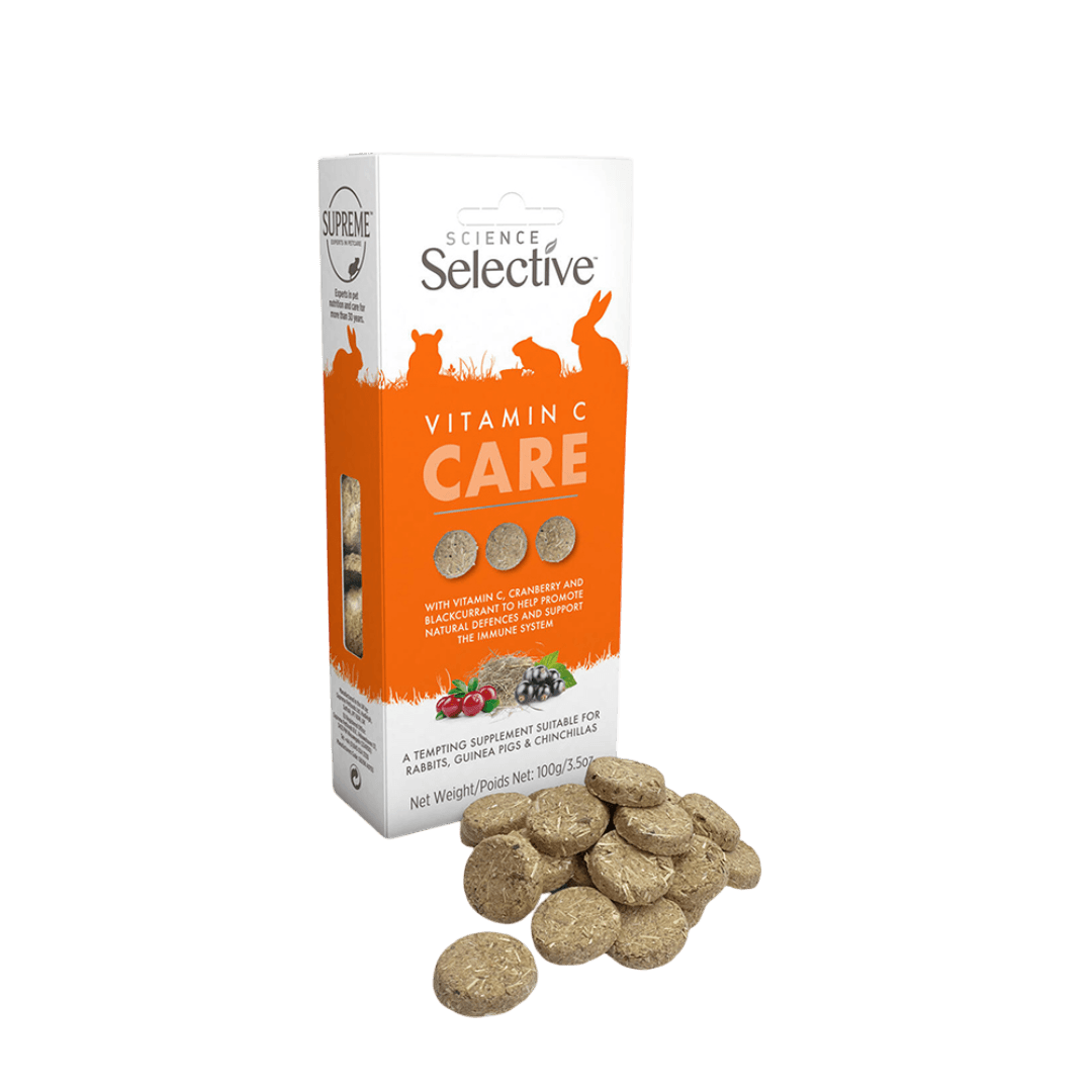 The Science Selective Vitamin C Care Supplement for Small Pets is a daily treat formulated to support the immune systems of rabbits, guinea pigs, and chinchillas. This highly palatable supplement provides a reliable source of Vitamin C and natural antioxidants to help promote your pet's natural immunity defences.