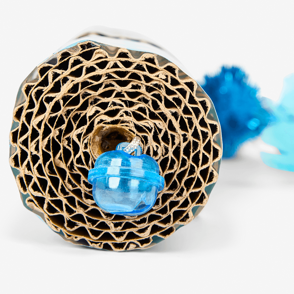 Entertain and satisfy your cats instincts with the Blue Cardboard Roller Cat Toy, a colorful and multifaceted accessory designed for varied play. Made from eco-friendly, durable thick cardboard, this toy is perfect for scratching, batting, and active play.
