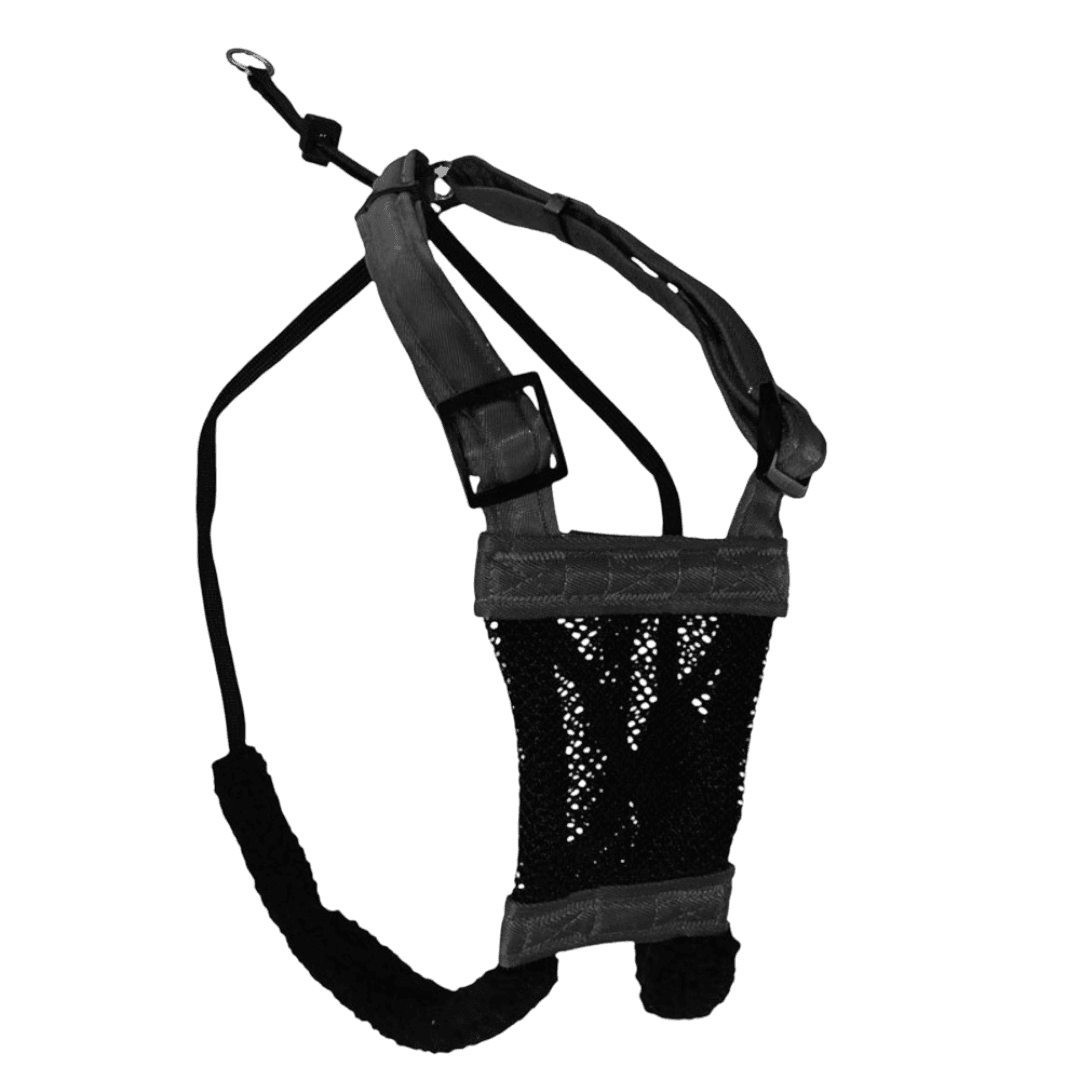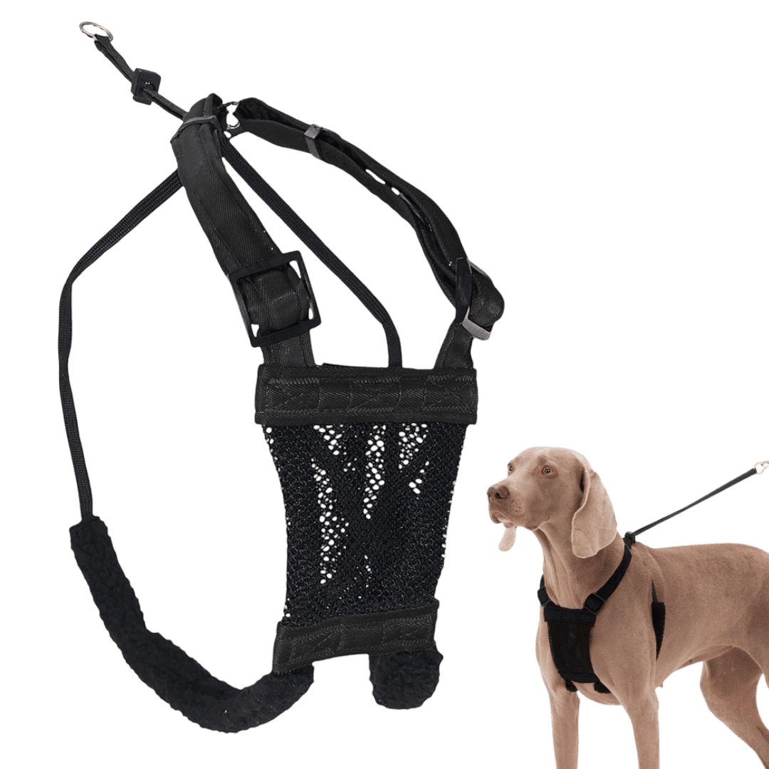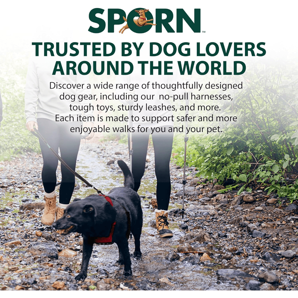 The Sporn Stop Pull Mesh Dog Harness in Black helps turn tug-of-war into a calmer walk. The patented design guides from the chest and underarms to discourage pulling, while the breathable mesh plate and fleece-lined sleeves keep things comfortable. It slips on fast, adjusts with a sliding cord lock, and uses weather-resistant nylon with nickel-plated hardware for everyday reliability.