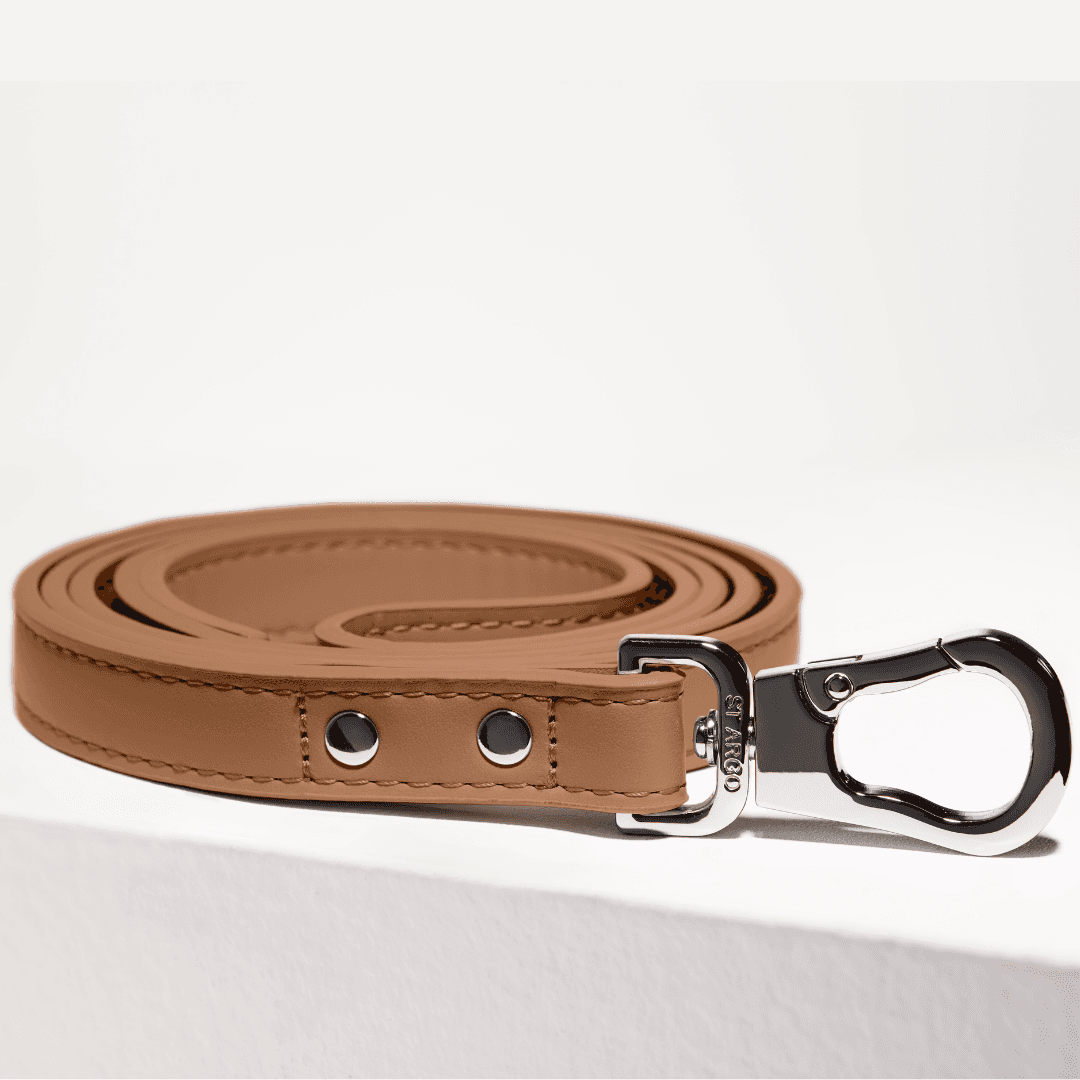 The Vegan Leather Dog Lead in Brown offers a stylish and sturdy walking solution, crafted from buttery-soft PU vegan leather and reinforced with a double-bolted clasp and mesh backing. With a secure 120kg tensile strength and chic design, this lead balances elegance and reliability for everyday strolls or loose-leash running.