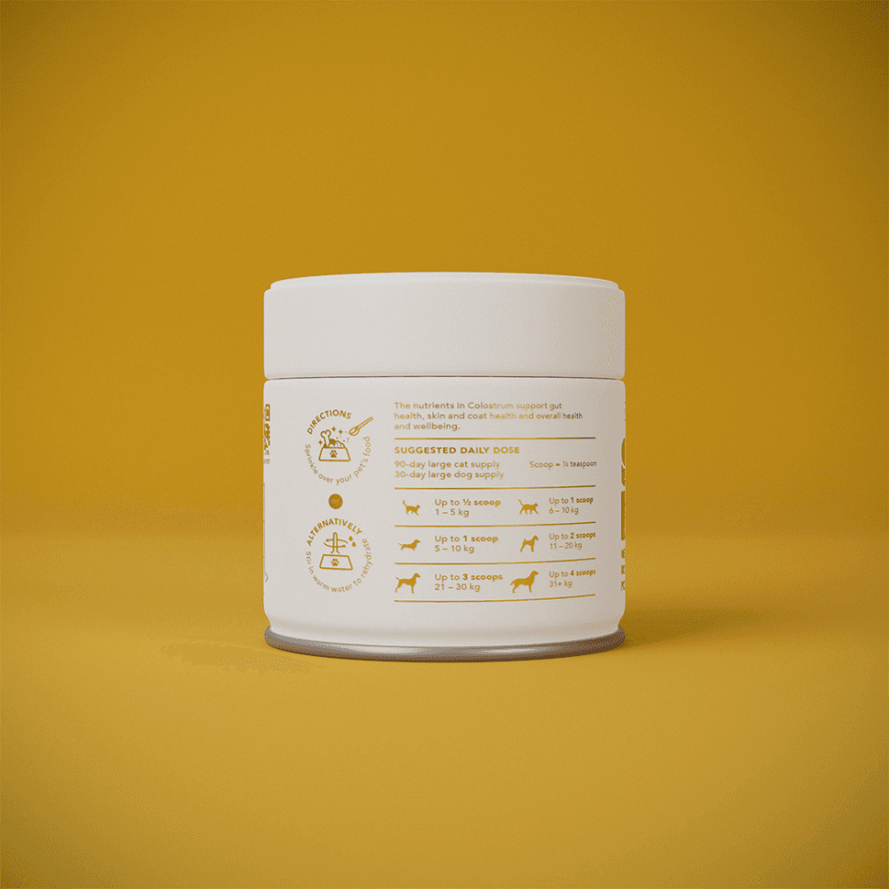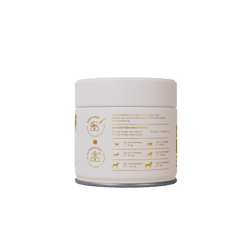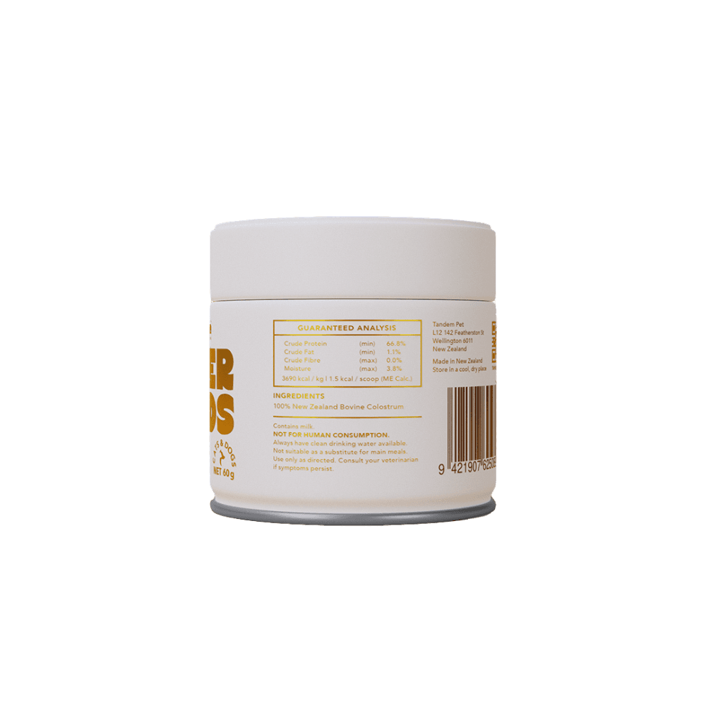 Tandem Super Foods New Zealand Bovine Colostrum Powder is a nutrient-dense dietary supplement designed to support the holistic health of both cats and dogs. Sourced from grass-fed, pasture-raised cows on New Zealand's South Island, this premium powder provides a natural boost to gut health, skin condition, and overall vitality.