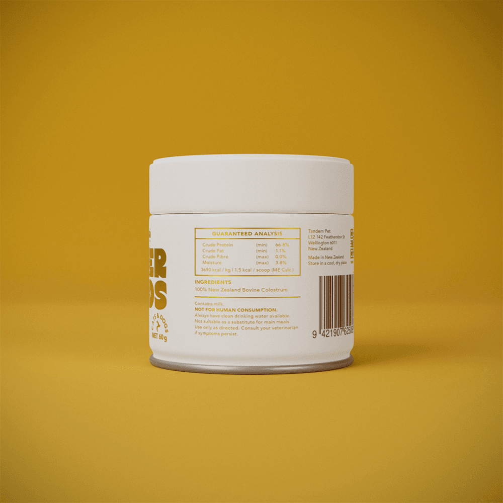 - Tandem Super Foods New Zealand Bovine Colostrum Powder can be easily sprinkled over meals, mixed into wet food, or rehydrated with warm water into a nourishing broth