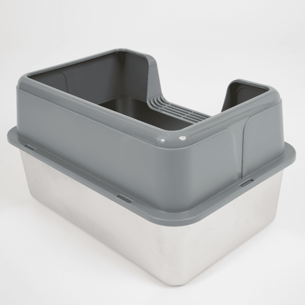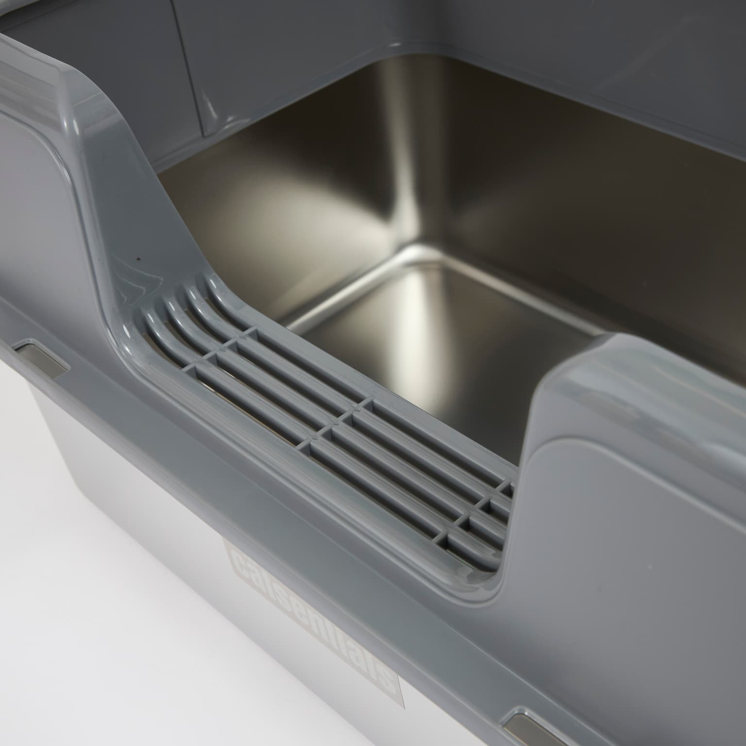 The Catsentials Front Opening Stainless Steel Cat Litter Box Grey