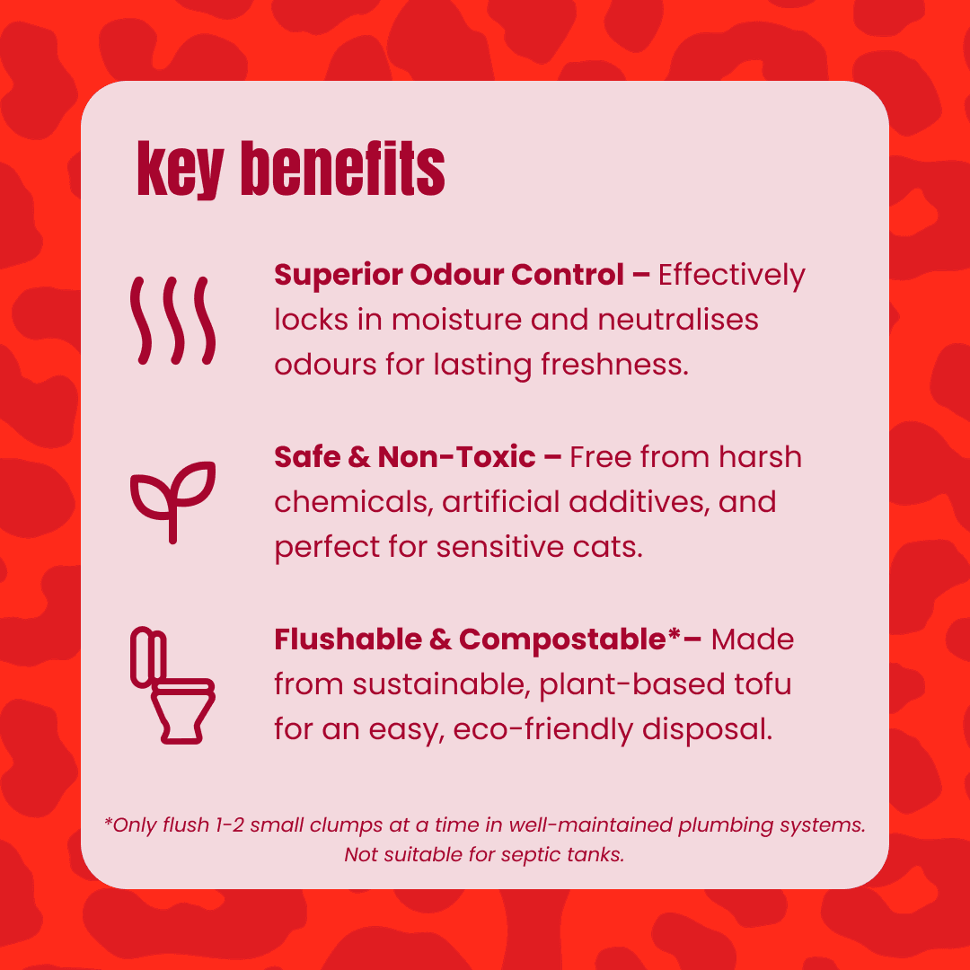 - Flushable & Compostable* – Made from sustainable, plant-based tofu for an easy, eco-friendly disposal