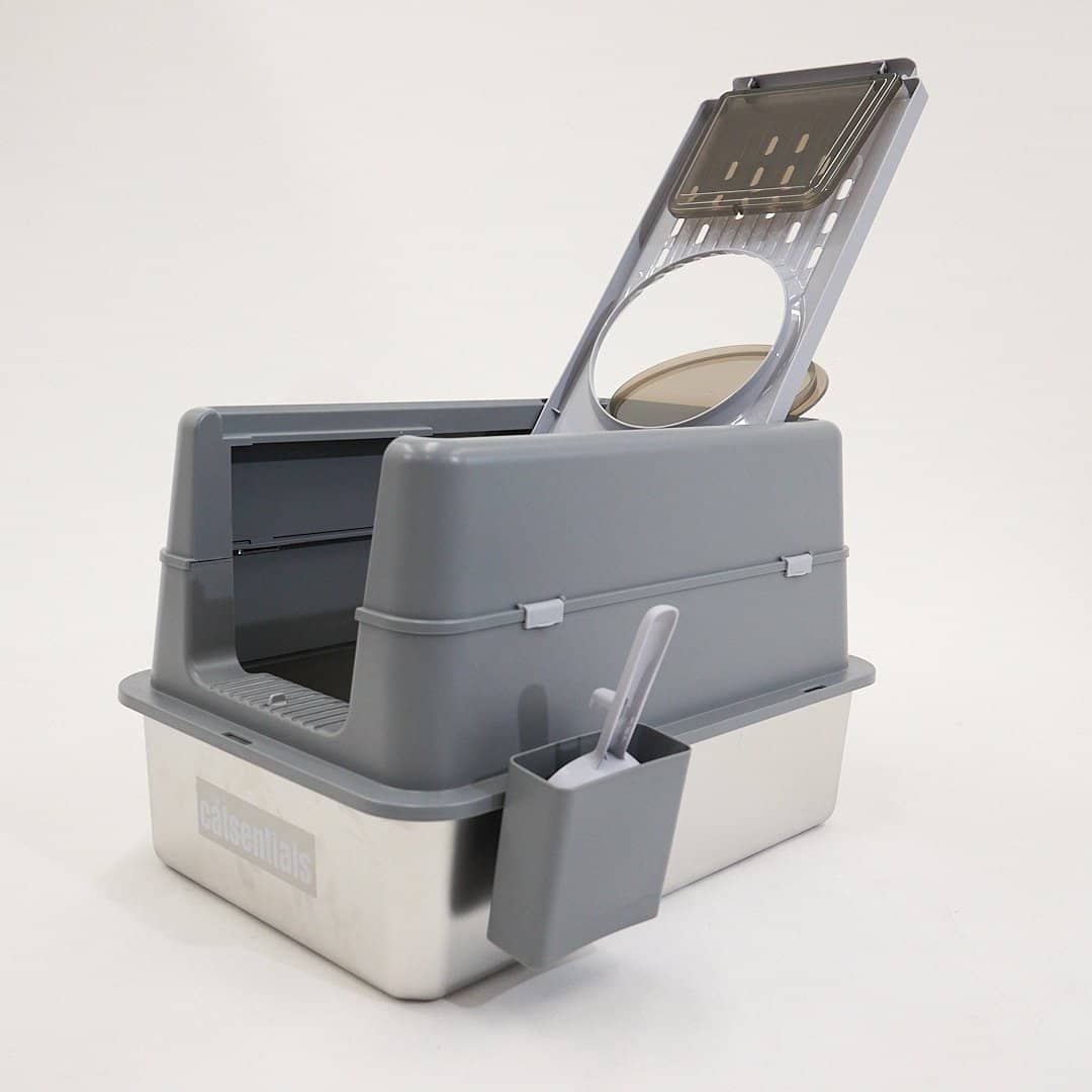 - A unique top-entry exit features a perforated lid that helps dislodge litter from your cat's paws as they jump out
