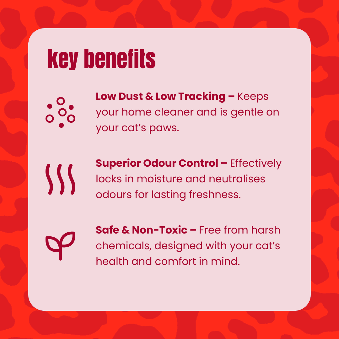 - Fast, Strong Clumping – Forms, tight easy-to-scoop clumps to keep the litter box clean with minimal waste