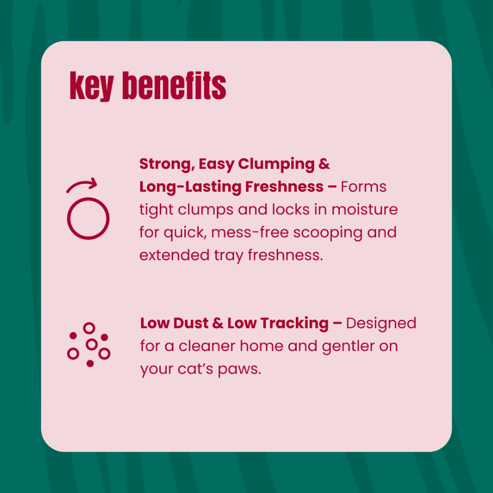 - Low Dust & Low Tracking – Refined to reduce dust during pouring and digging for a cleaner home and gentler on your cat’s paws