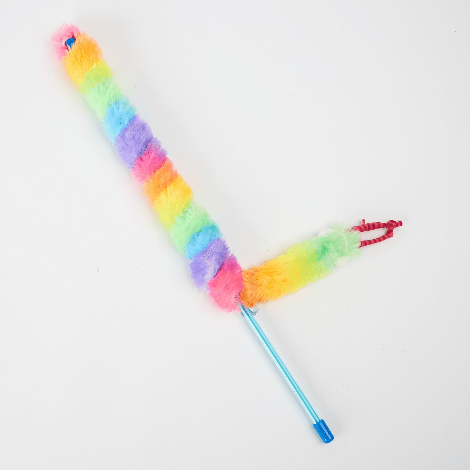 The Catsentials Rainbow Fur Snake With Crinkle Cat Teaser is an engaging and interactive toy designed to captivate your cat's attention and encourage active playtime. Featuring a combination of bright rainbow fur, and a satisfying crinkle sound, this teaser wand is a perfect tool for stimulating your cat's natural hunting and pouncing instincts while strengthening the bond between pet and owner.