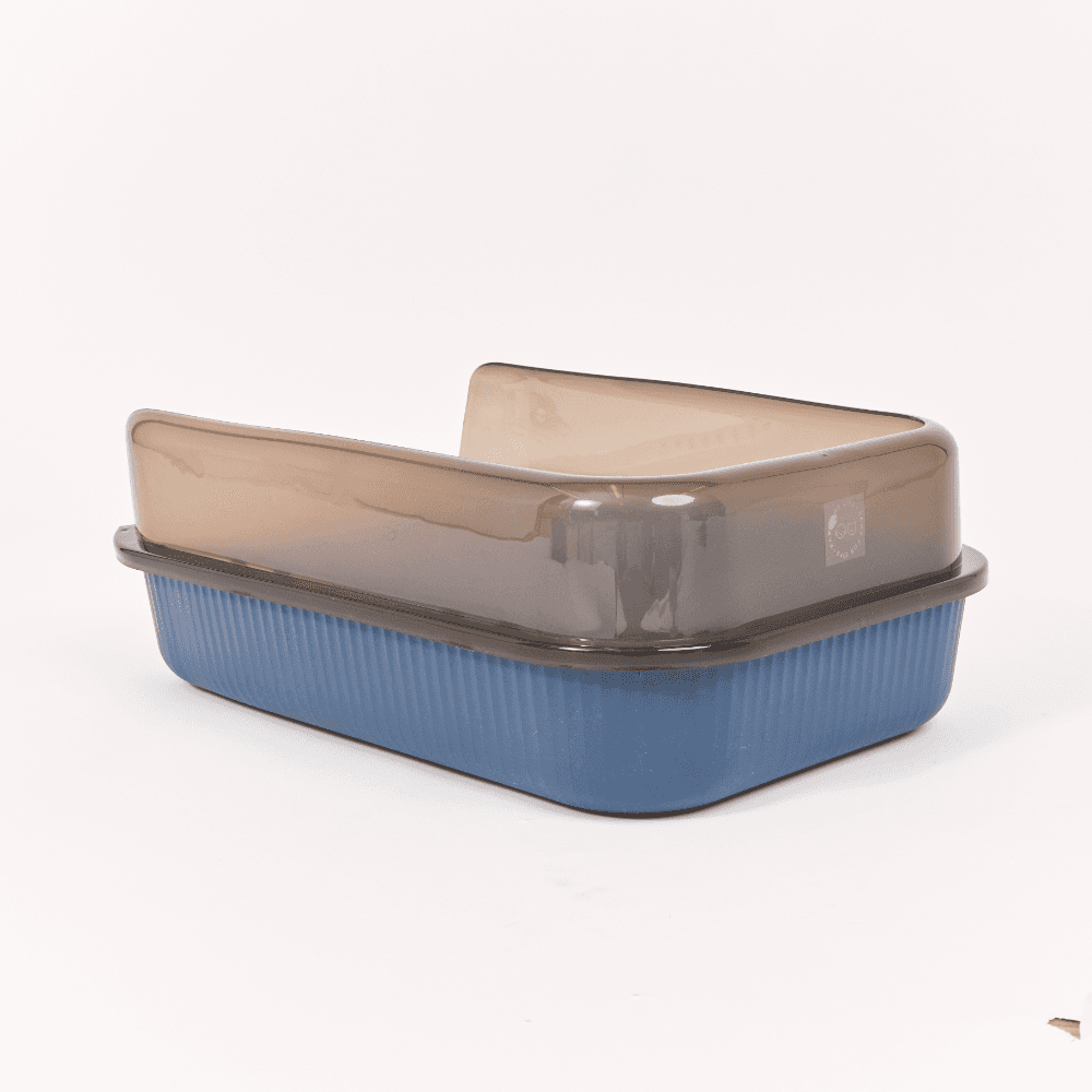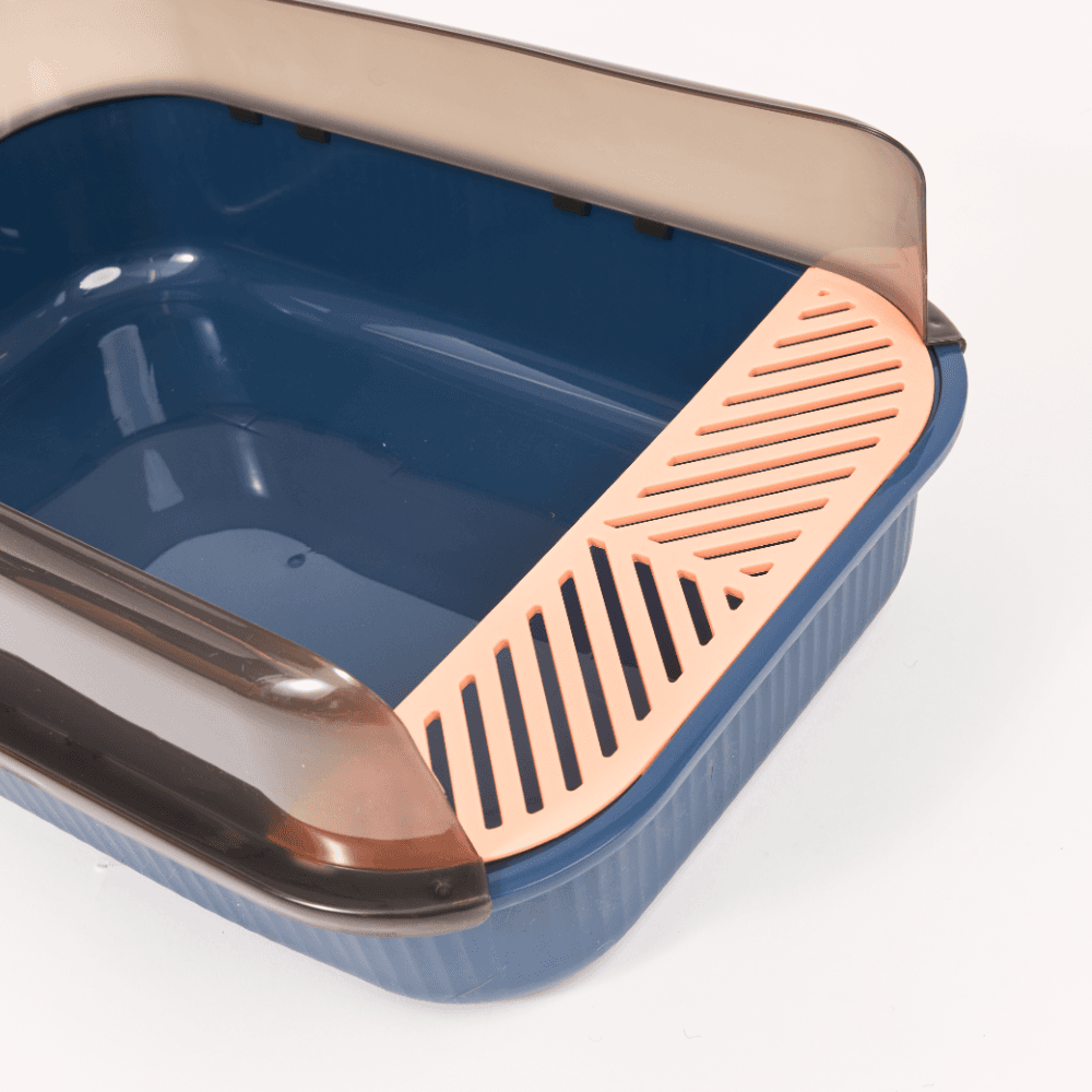 The Catsentials Semi-Enclosed Cat Litter Box in dark blue is a practical and stylish solution designed to enhance your cat's litter experience. With high walls to prevent spillage and leakage, it offers privacy and comfort for your feline while making clean-up easy for you.