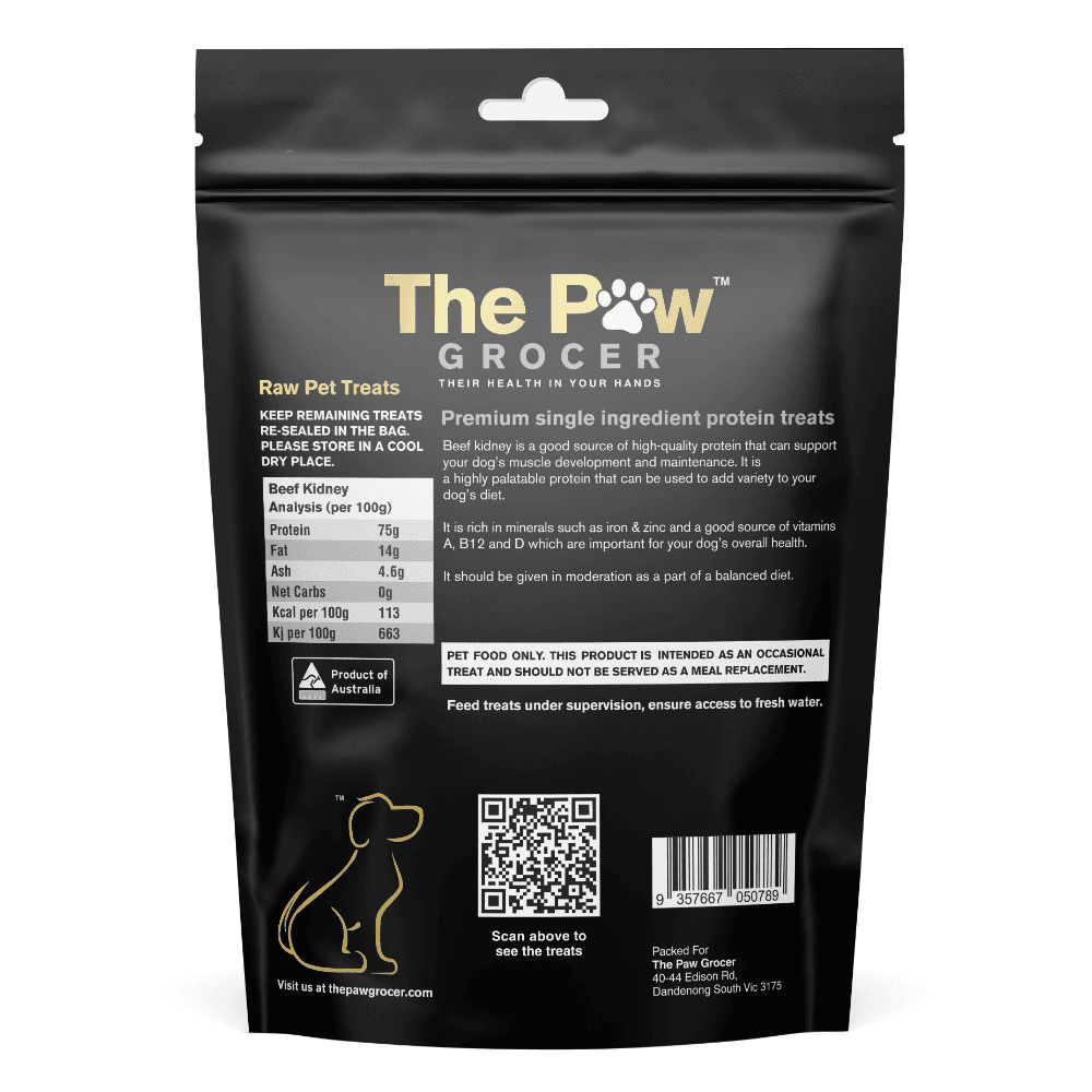The Paw Grocer Freeze-Dried Beef Kidney Dog and Cat Treats offers a wholesome, nutrient-dense option for pet parents seeking a biologically appropriate treat. Made from 100% Australian grass-fed beef kidney, this single-ingredient treat is suitable for both cats and dogs, providing raw nutrition with nothing artificial added.