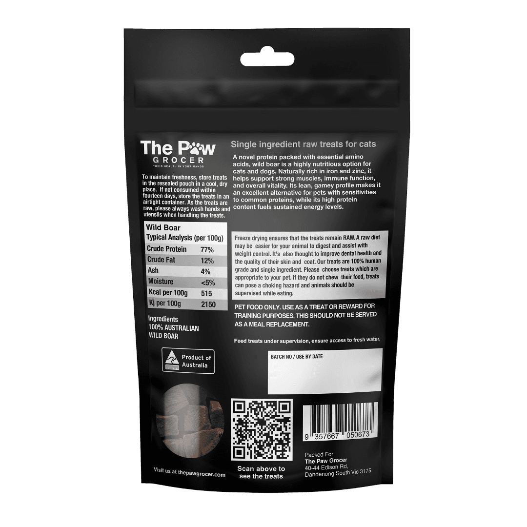 - Ethically sourced from wild Australian boar, these treats provide a high-quality protein that is naturally lean and full of flavour
