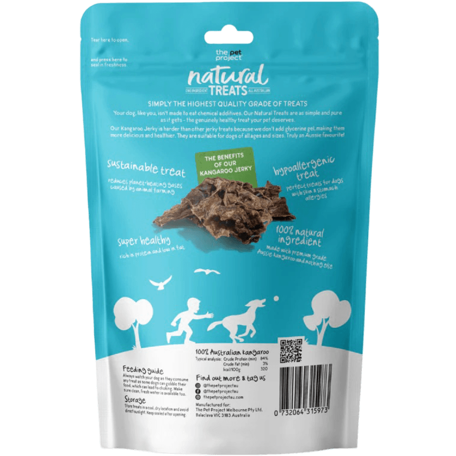 The Pet Project Kangaroo Jerky Dog Treats are a premium, single-ingredient snack crafted from 100% Australian kangaroo to provide a tough and flavorful chew. These natural treats are gently dried without the use of glycerine gels, ensuring a high-protein and low-fat reward that supports a healthy diet for your canine companion.