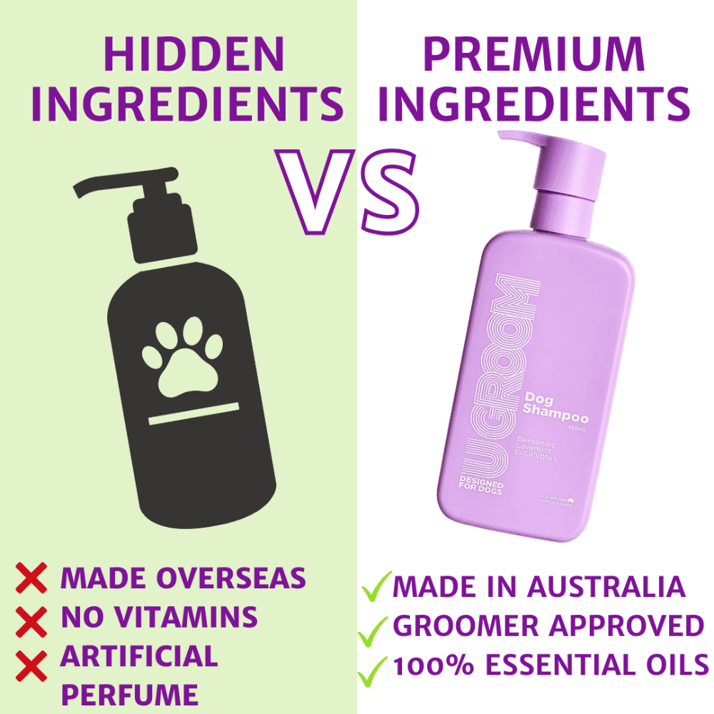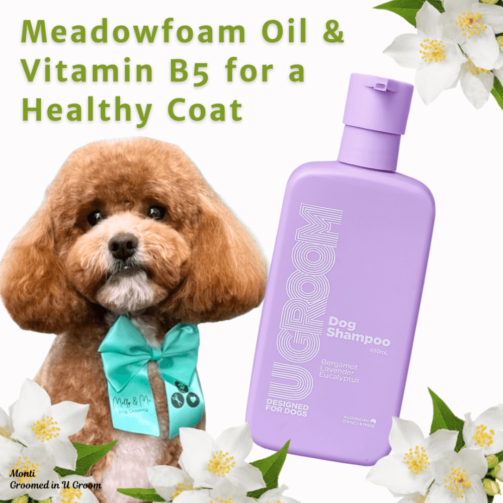 Meet U GROOMs Dog Shampoo - your pup's new best friend in the bath. This delightful blend of Meadowfoam Oil, Jojoba Oil, and Aloe Vera isn't just here to cleanse; it's here to pamper, nourish, and turn every dog into the shiniest, happiest version of themselves. Made right here in Australia, this shampoo kicks dirt and odours to the curb while bringing out a healthy, glossy coat that'll make your dog the talk of the park.