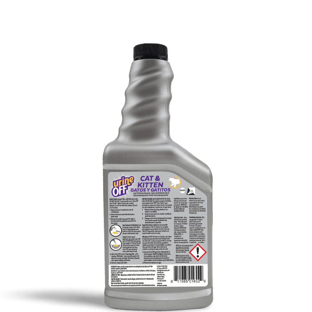 - Helps prevent repeat marking by removing the pheromonal triggers left behind in urine stains