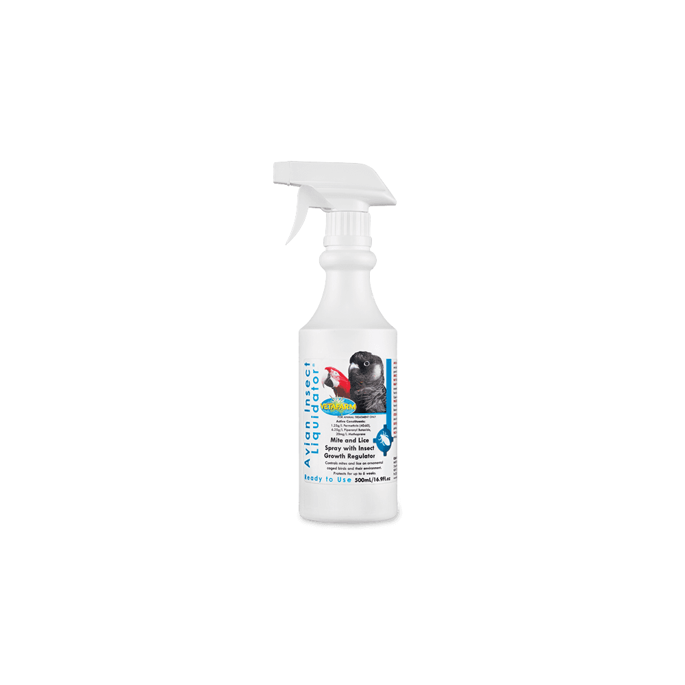 - Can be sprayed directly onto birds, cages, perches, nesting boxes, and aviaries