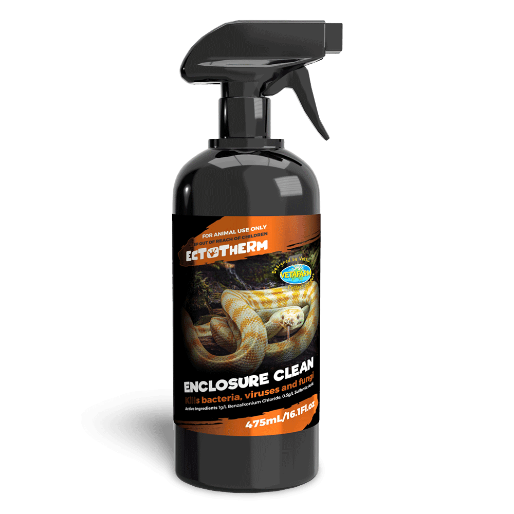 Vetafarm Ectotherm Enclosure Clean delivers hospital-grade hygiene for reptile habitats. Developed by vets in Australia, Vetafarm ensures high-quality, science-backed solutions. This ready-to-use spray simplifies terrarium cleaning, killing germs while being biodegradable and safe for ectotherms.