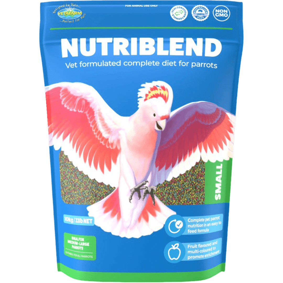 Provide balanced, vet-formulated nutrition with Vetafarm Nutriblend Pellets Small. Proudly Australian owned and made by avian health experts, this complete diet eliminates selective feeding seen with seeds. Its fruit flavour appeals to Budgies, Cockatiels & Lovebirds for optimal health.