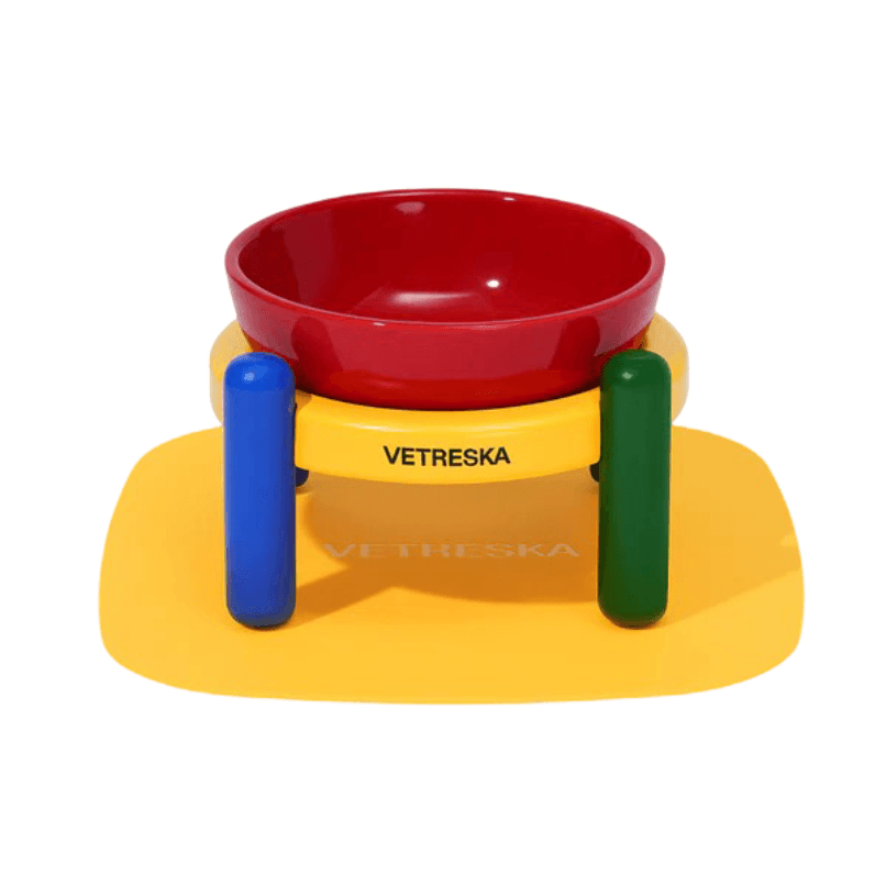 - The bright yellow non-slip silicone mat helps to contain spills and keep the bowl securely in place