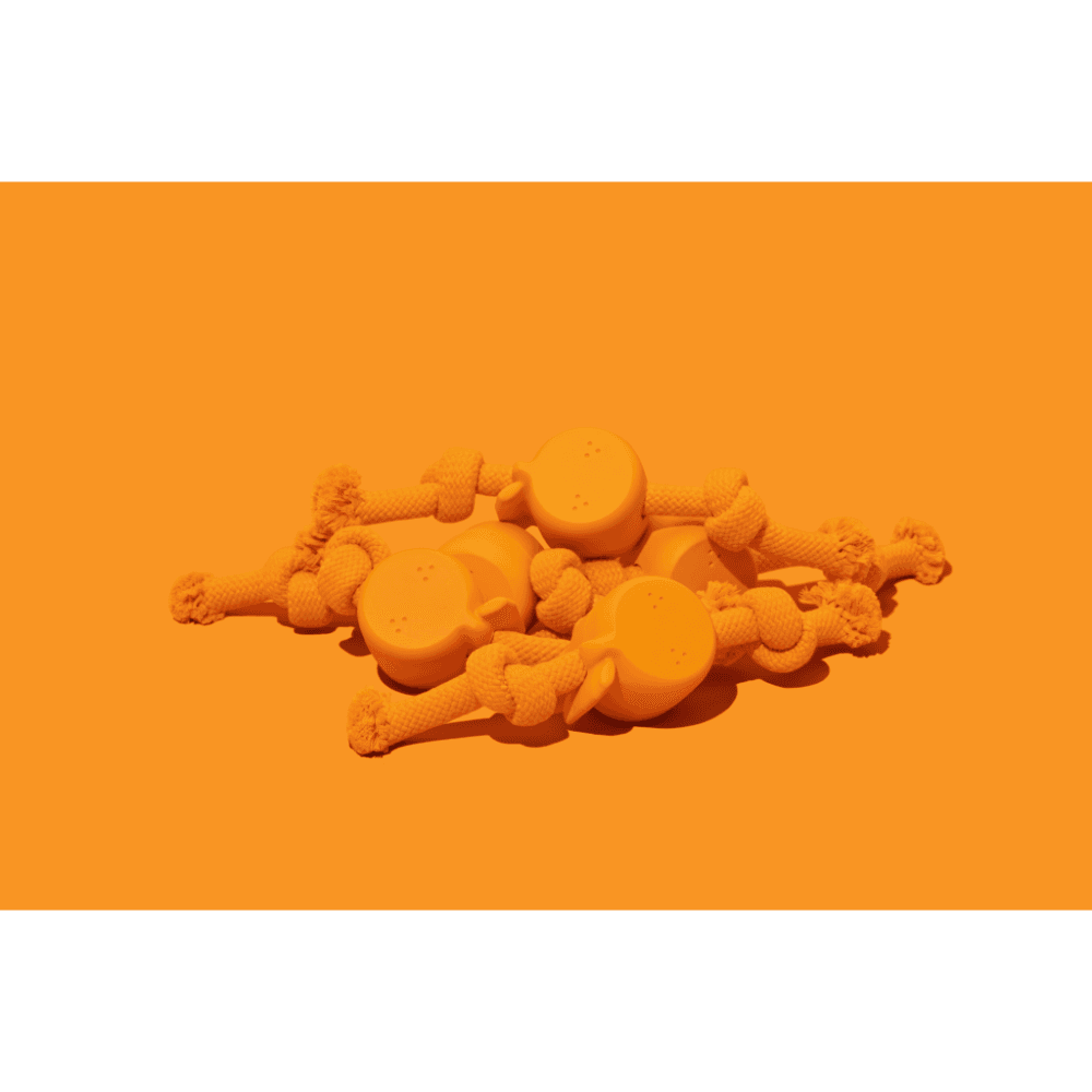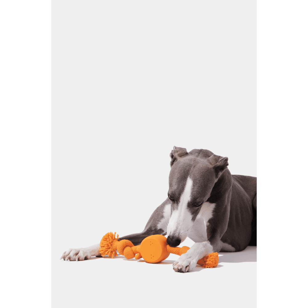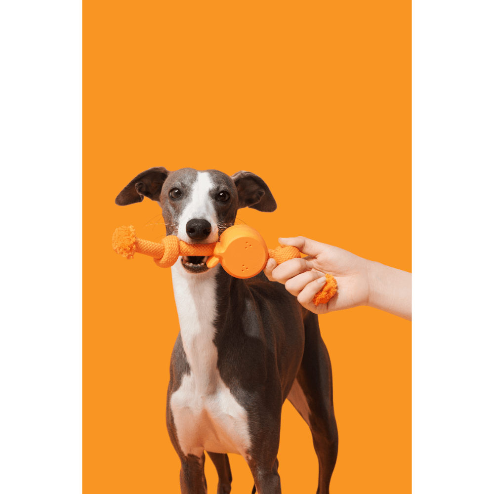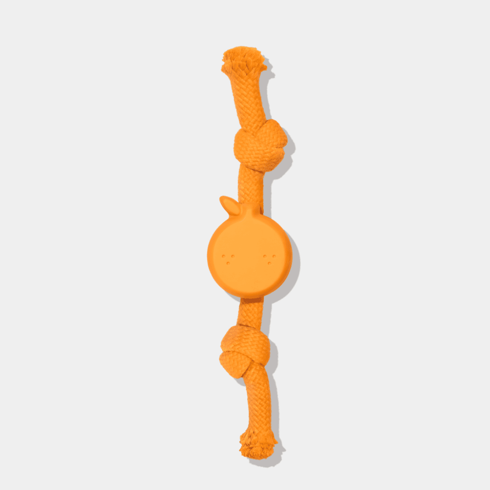 The VETRESKA Playful Charm Knot Rope Toy in Tangerine is designed to satisfy your dog's natural chewing instincts while encouraging interactive play. This charming toy combines a durable dual-knot rope with a custom-moulded rubber charm, making it perfect for games of fetch and tug-of-war.