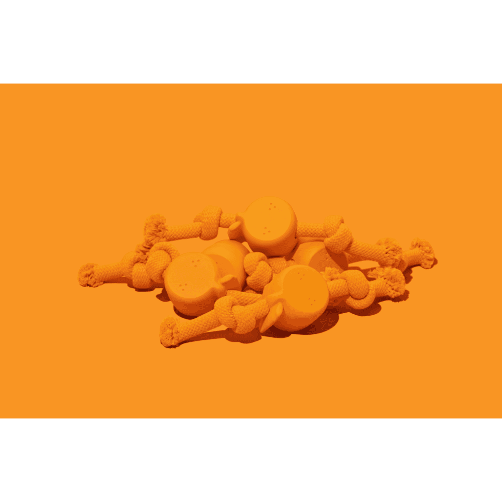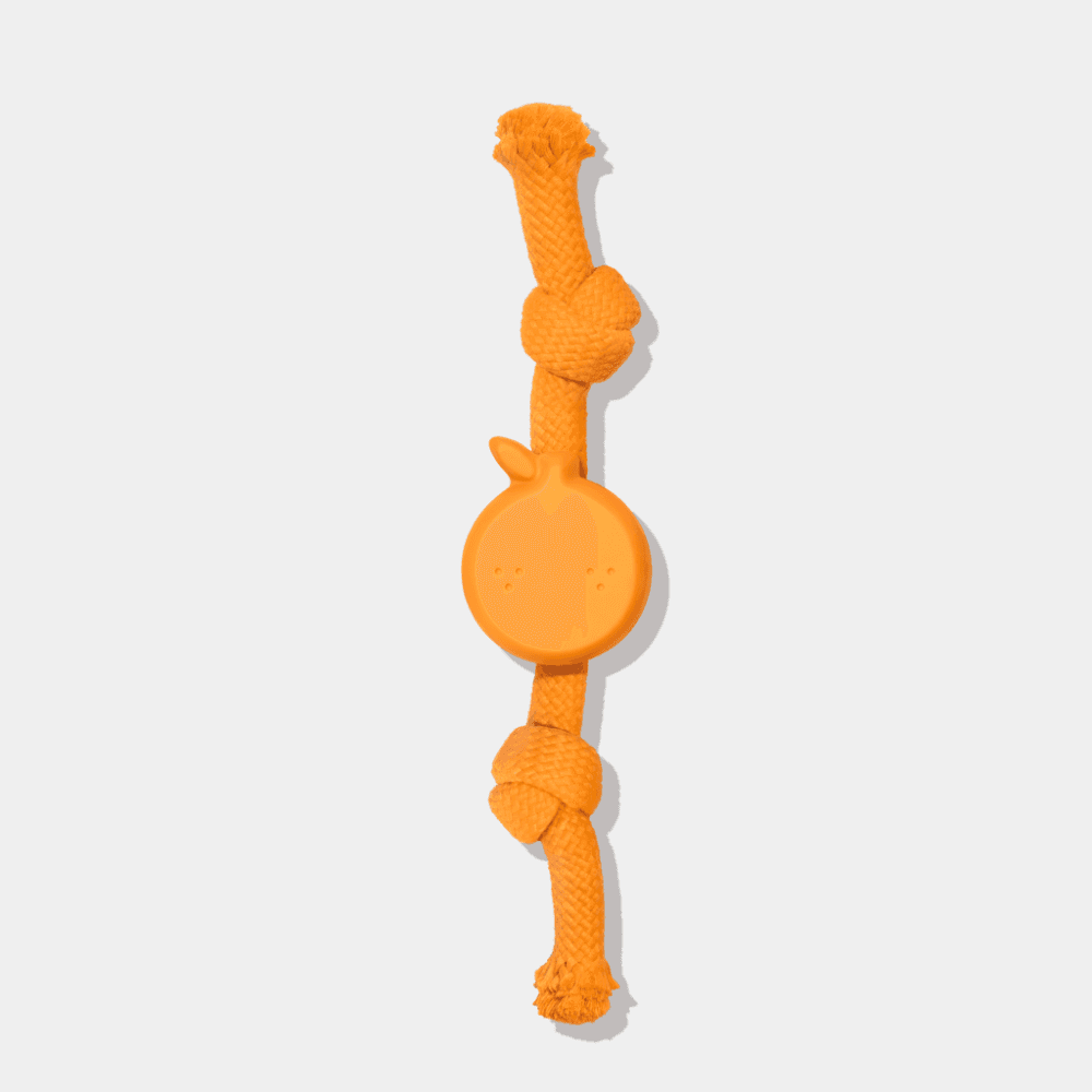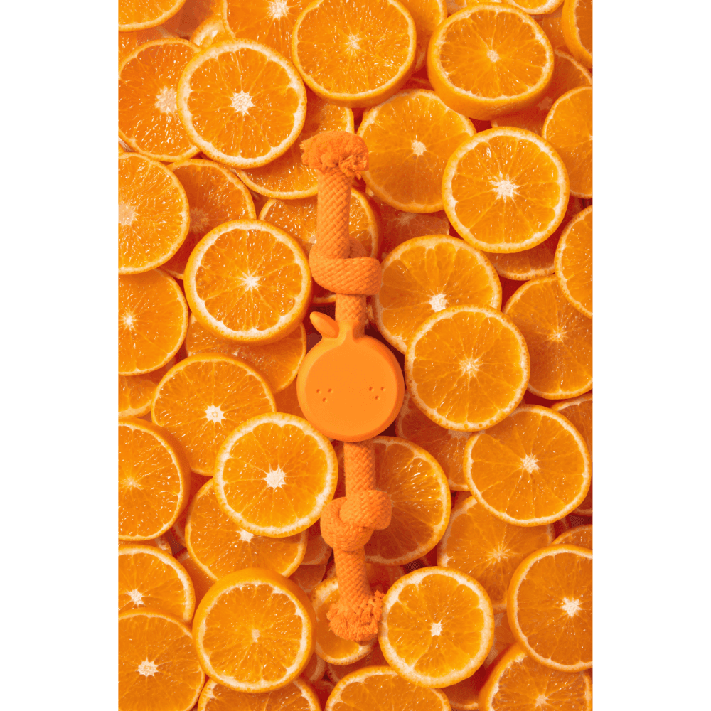 - Includes a securely interwoven, custom-moulded natural rubber charm in a fun tangerine design