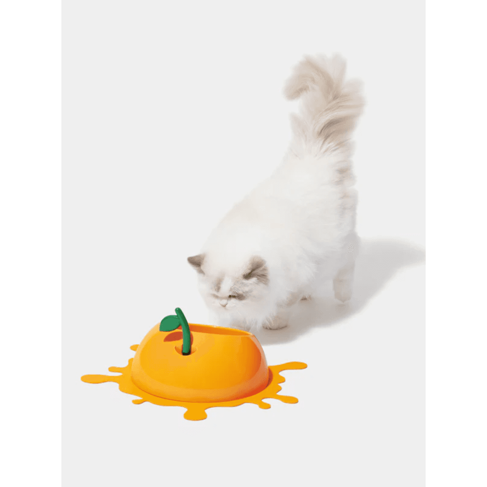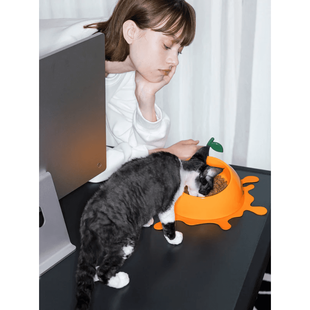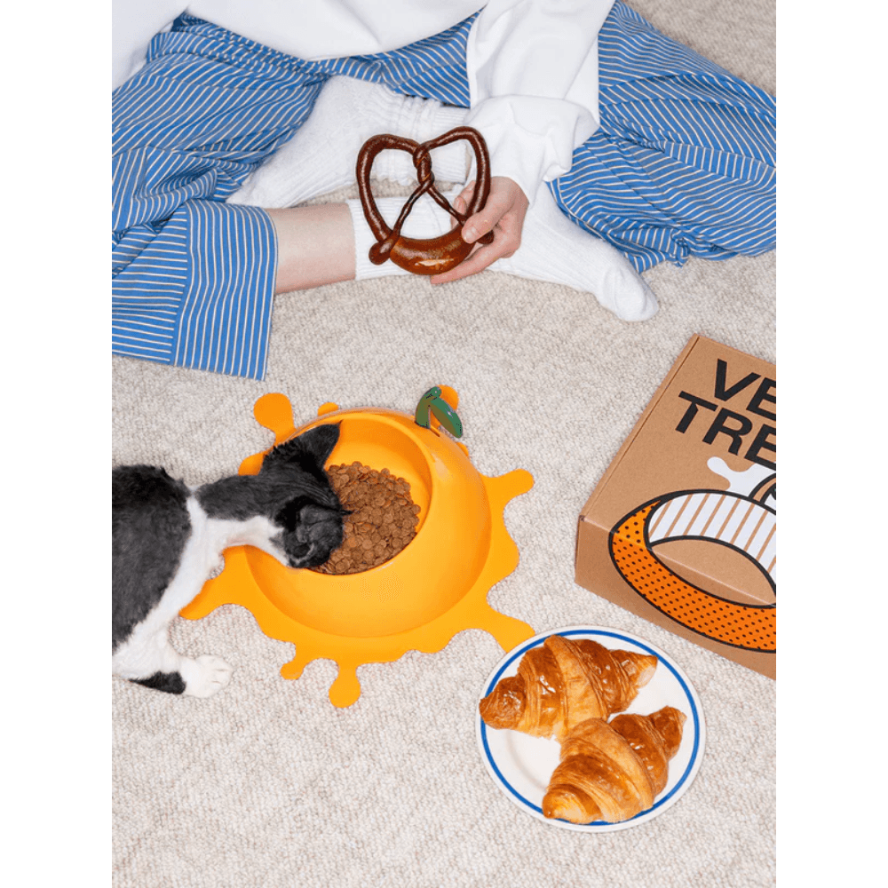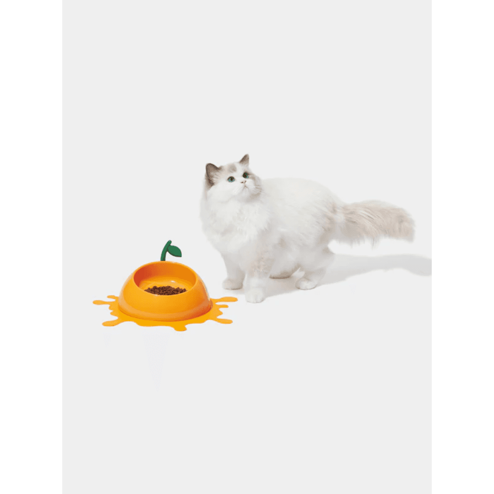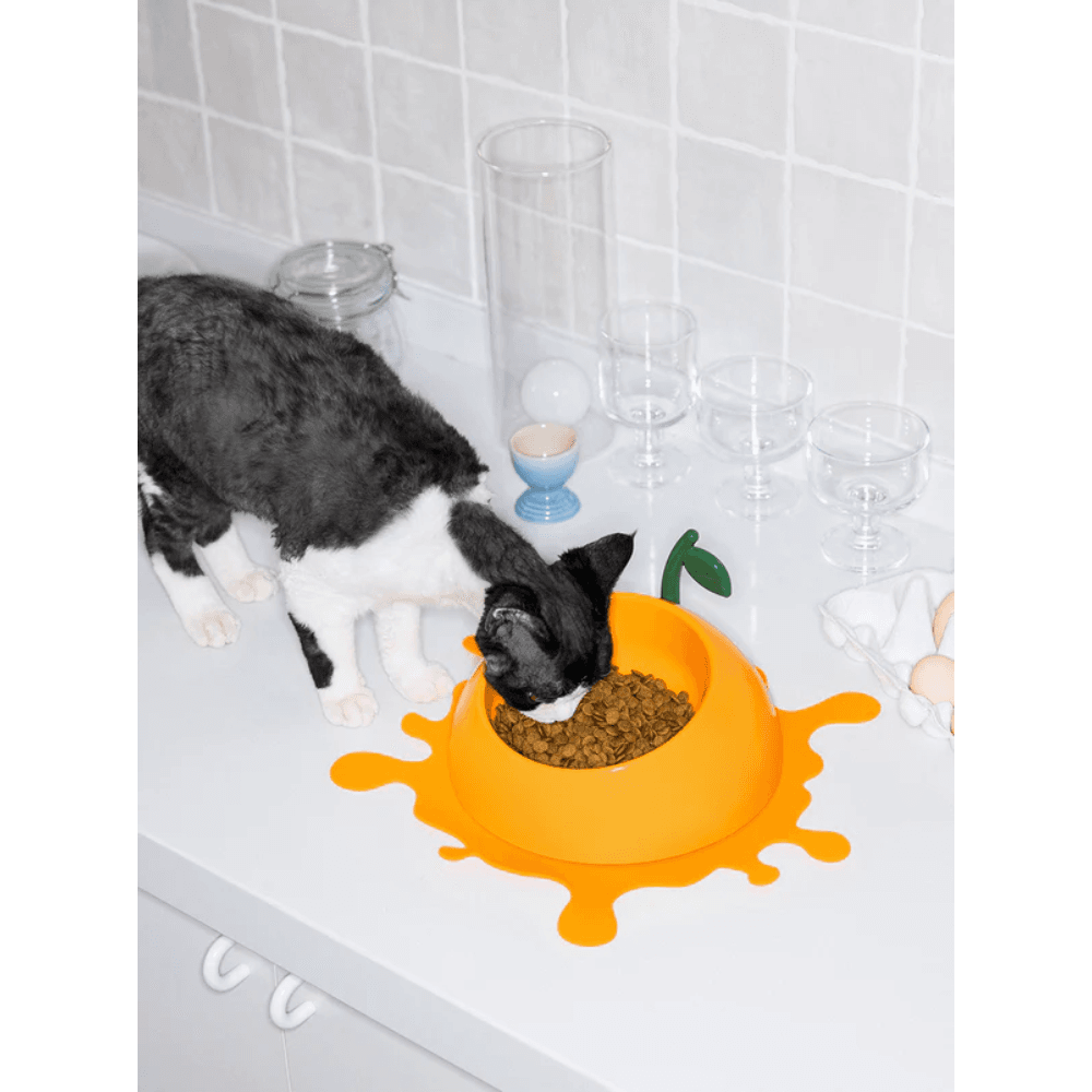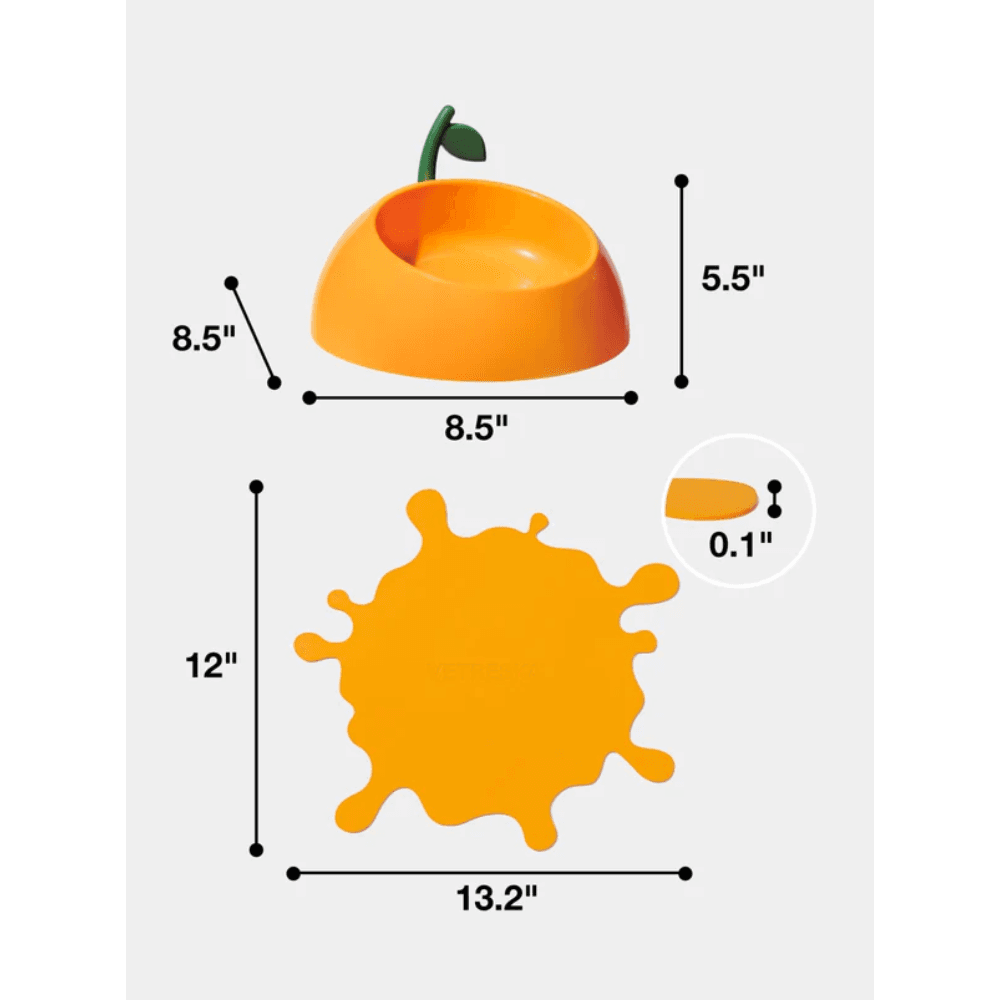 The VETRESKA Pet Bowl Spoon And Mat Set Juicy Tangerine adds a bright and cheerful touch to your pet's daily meal routine. Designed for comfort and convenience, this set features an ergonomically tilted bowl made from food-grade materials, a matching leafy spoon, and a non-slip 'juice splash' mat.