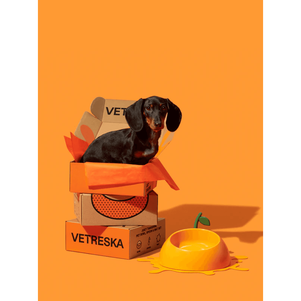 Vetreska Pet Bowl Spoon And Mat Set Juicy Tangerine