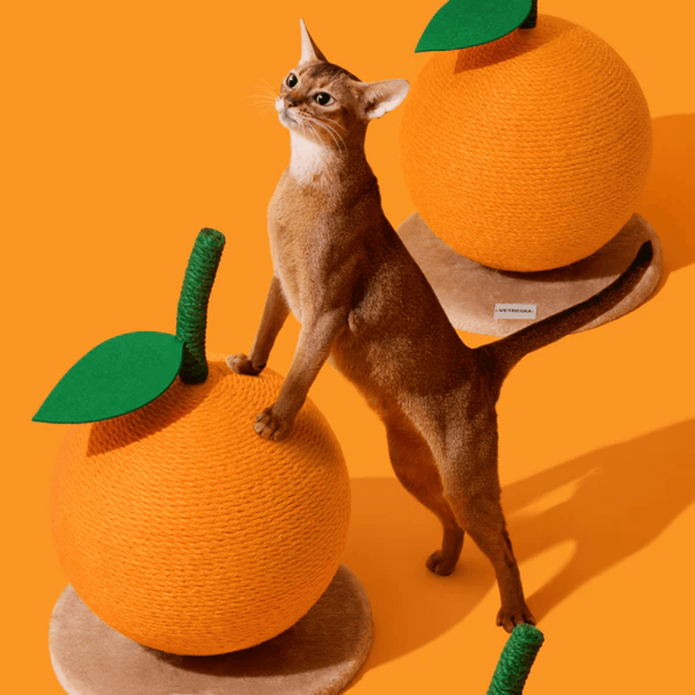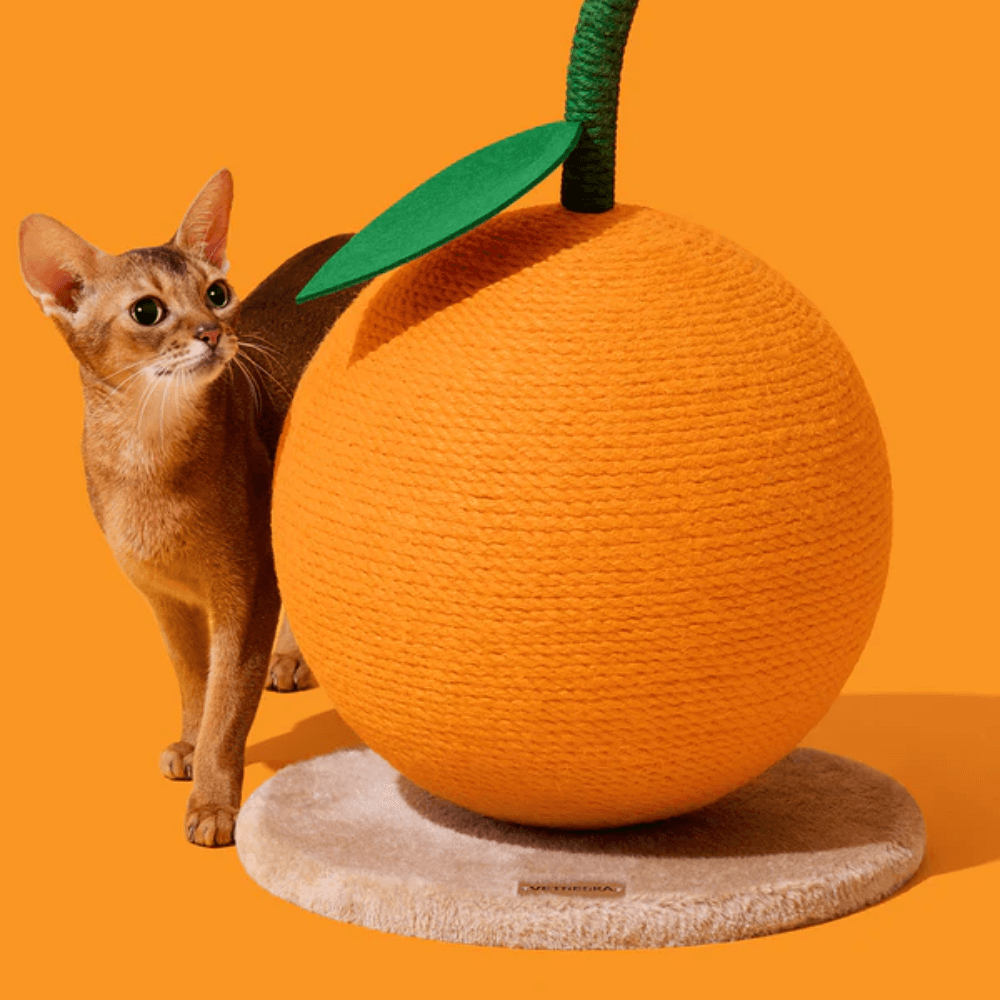 The VETRESKA Tangerine Cat Scratching Ball is a vibrant and engaging scratcher designed to satisfy your cat's natural instincts. Wrapped in durable jute rope, this tangerine-themed toy helps maintain your cat's claw health while protecting your furniture.