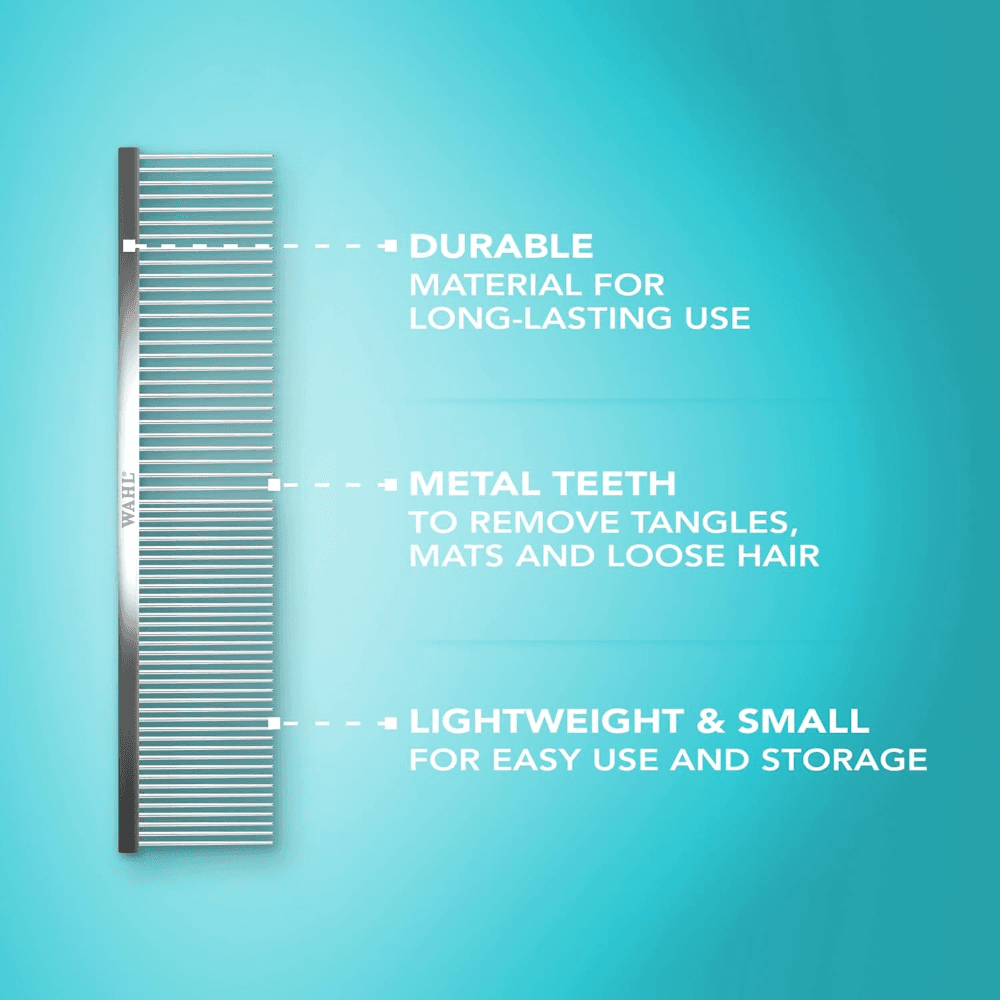 Achieve salon results with the Wahl 6 Inch Premium Professional Groomers Comb. Wahl brings professional-grade quality and over a century of expertise to home grooming. This durable comb detangles, removes loose hair, and smooths coats, trusted by experts for reliable performance.