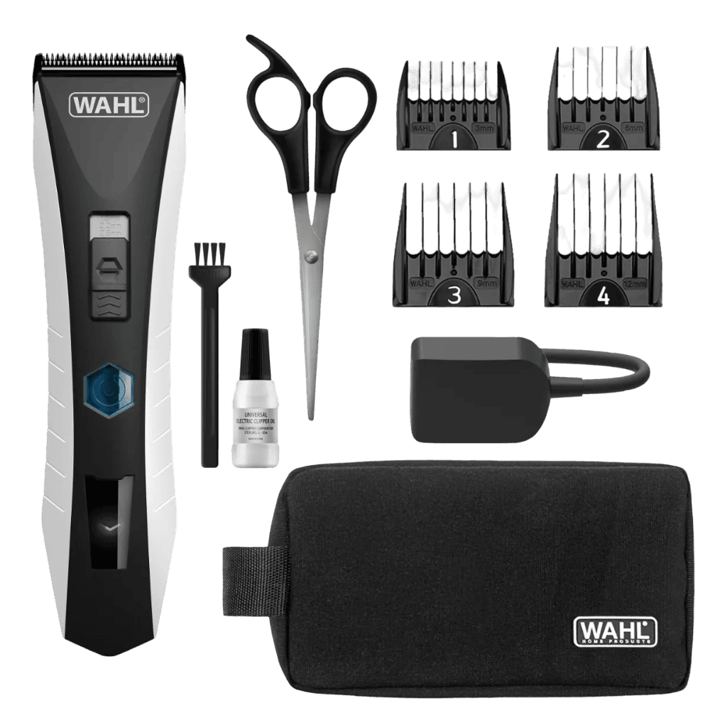 - Clean blades and combs after every session with the supplied brush and blade oil