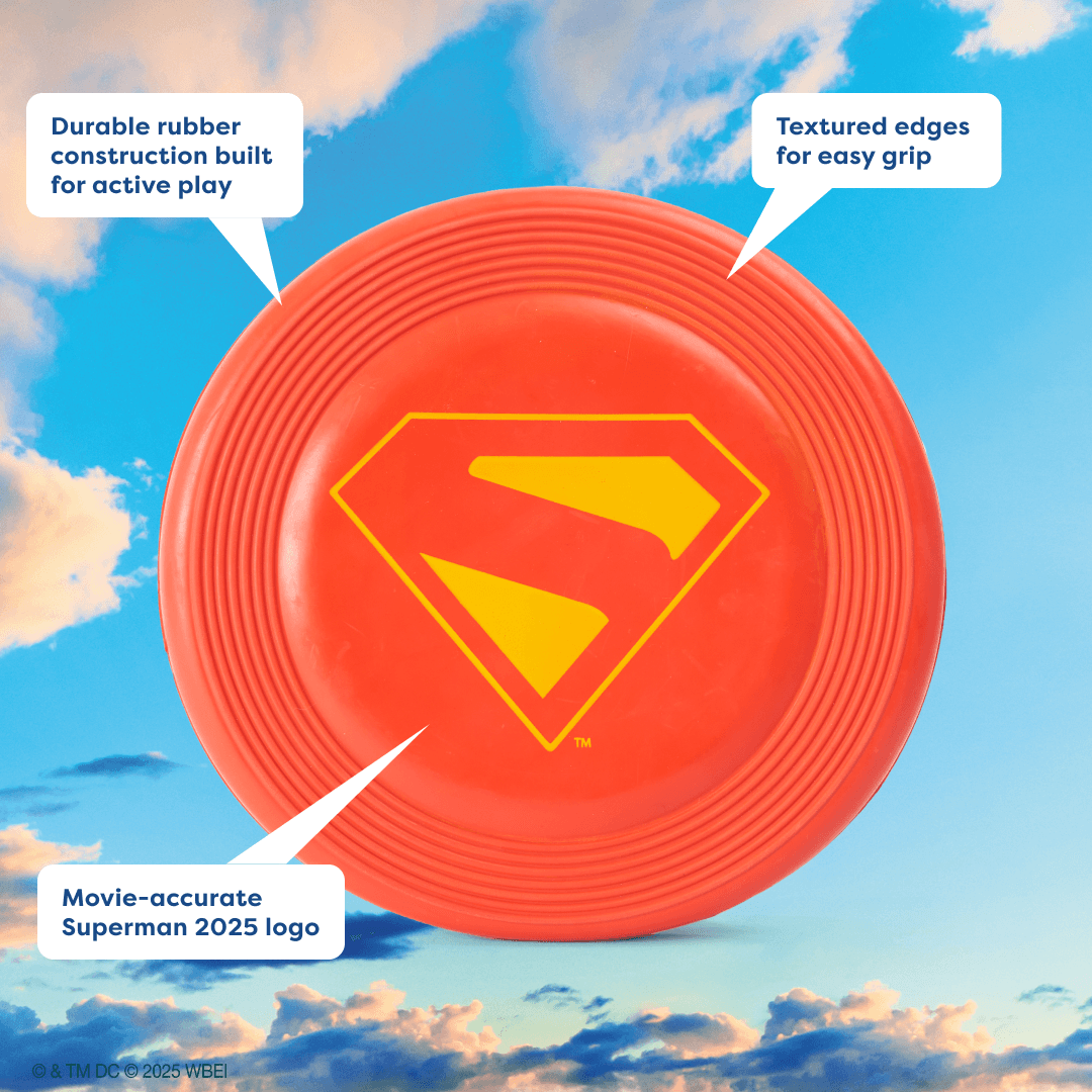 Give your pup the power of play superhero style. This Pet Circle exclusive, officially licensed SUPERMAN 2025 Dog Frisbee is made from durable, chew-resistant rubber and features the bold SUPERMAN shield straight from the big screen. Perfect for high-flying fetch sessions at the park, beach, or backyard.