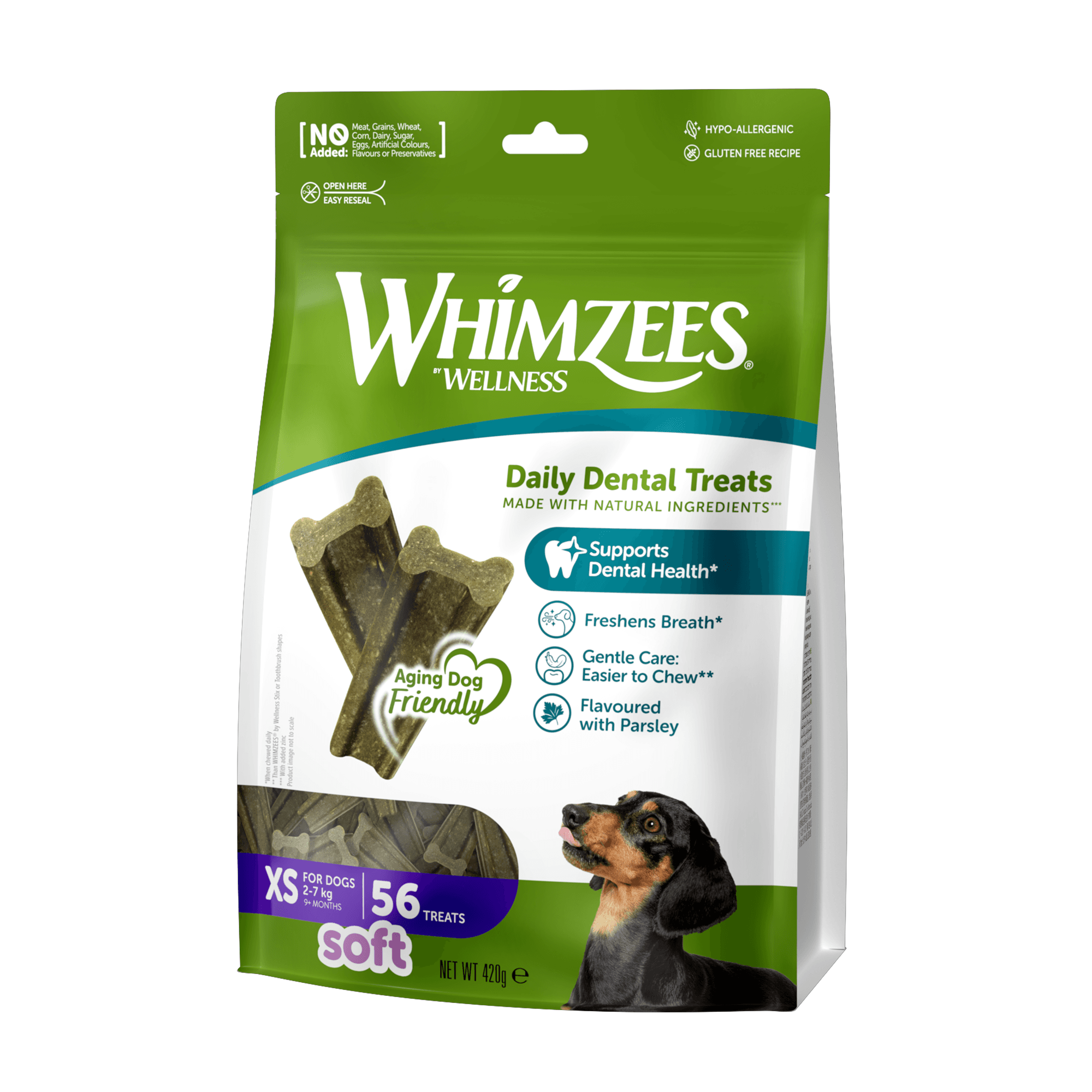 - Parsley flavour naturally freshens breath while your dog chews