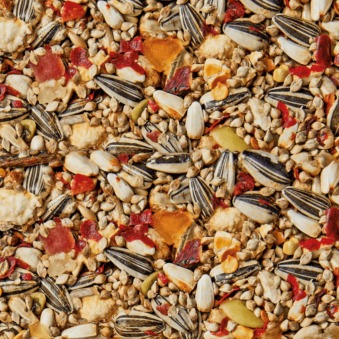 Grey sunflower seeds, Japanese millet, safflower, binder, chilli, pawpaw, pumpkin seeds, pineapple. Formula may vary due to seasonal availability