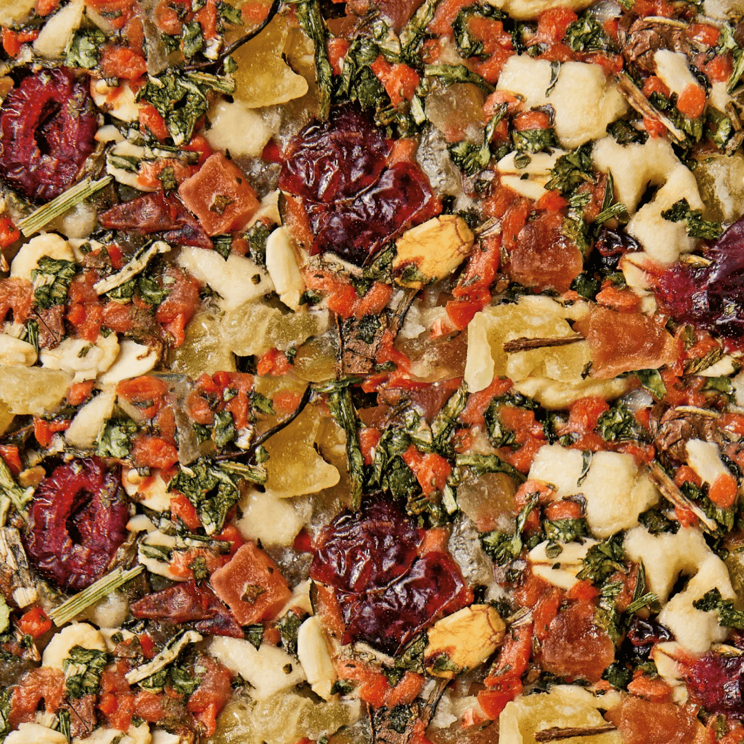 Pineapple, pawpaw, binder, carrot, honey toasted oats, apples, cranberries, dandelion. Formula may vary due to seasonal availability