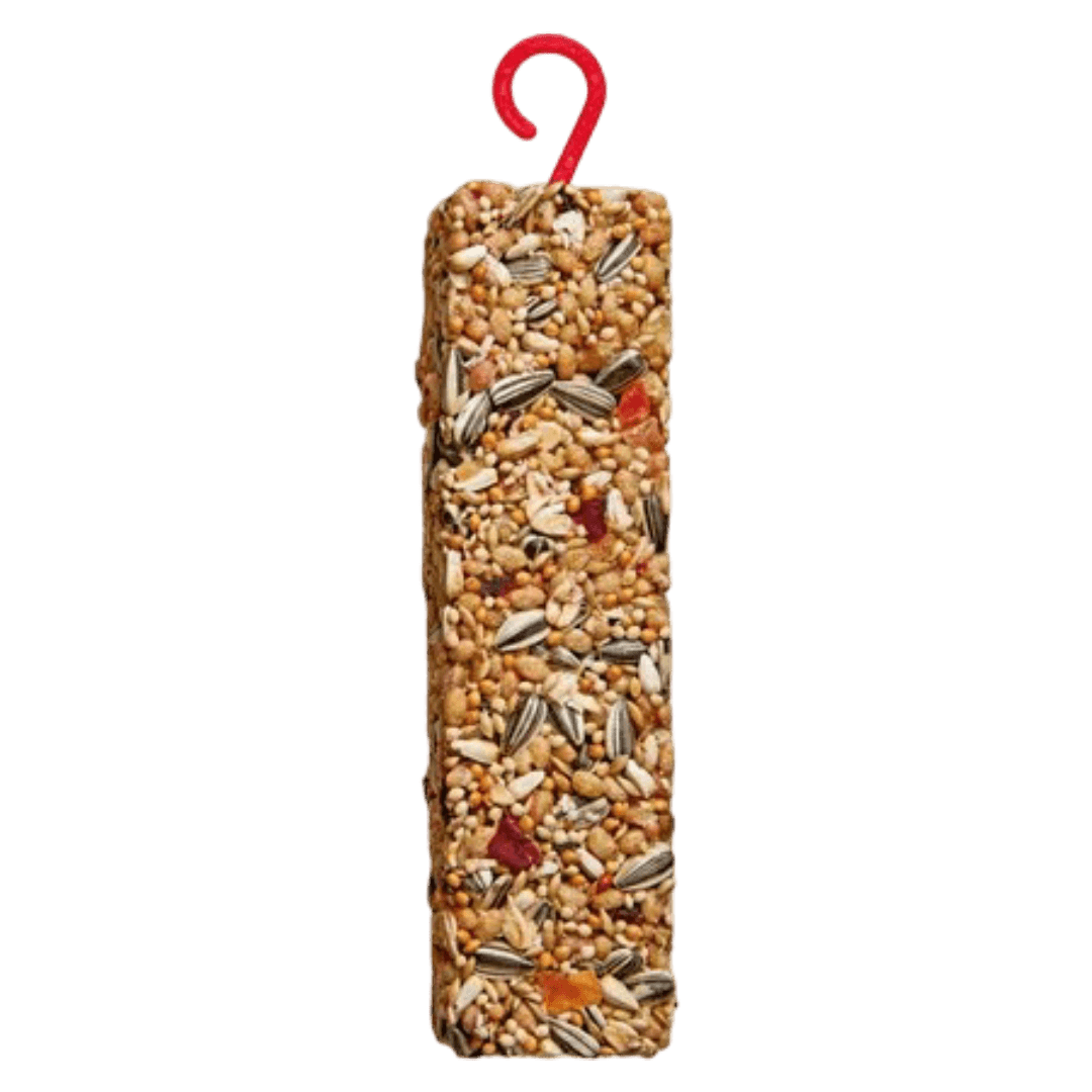 The Whistler Parrot Fruit Nut And Vegetable Health Bar Treat is a hanging treat for medium to large parrots. It's a delicious medley of peanuts, apples, and bananas, providing natural Protein and Vitamin C to support immune function and the nervous system