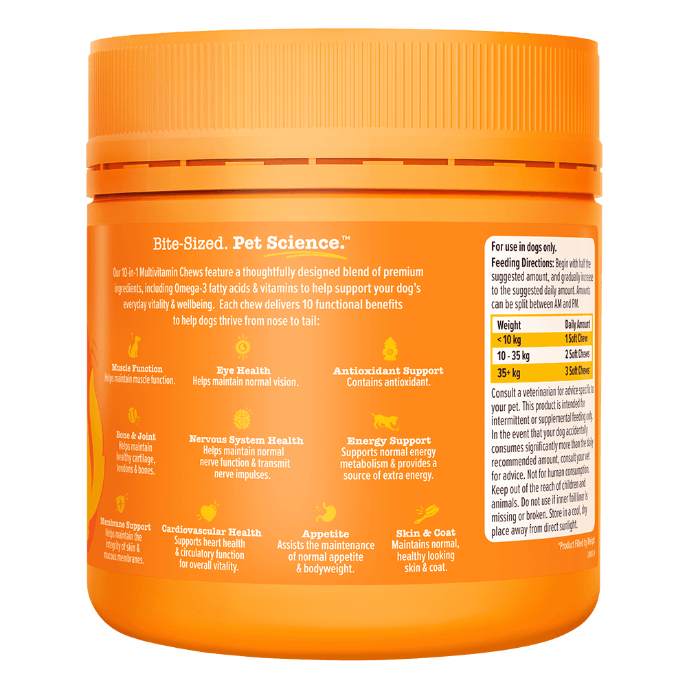 Zesty Paws 10-in-1 Multivitamin Chews for Dogs are a premium, all-in-one nutritional supplement designed to support eight functional areas of canine health. These heart-shaped chewables provide a comprehensive blend of vitamins, minerals, and fatty acids to promote long-term wellness and vitality in a highly palatable format.