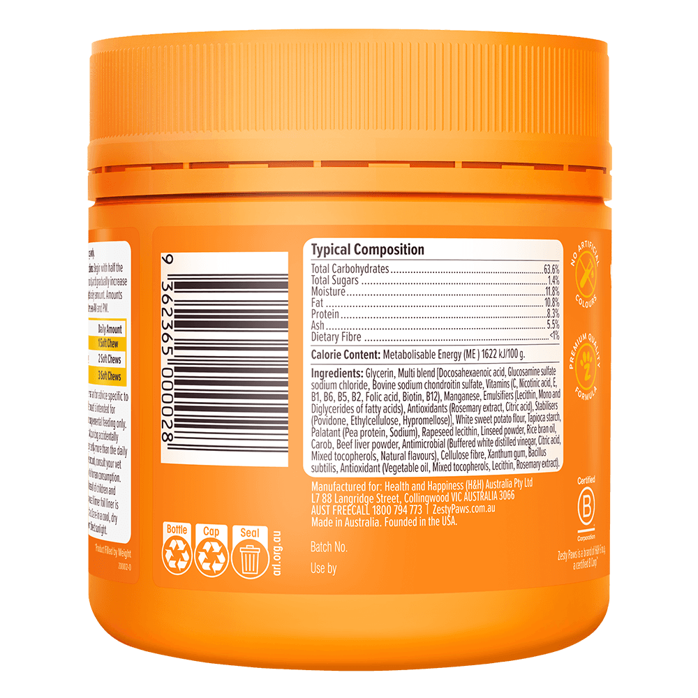 - These multifunctional supplements support hip and joint health through the inclusion of Glucosamine and Chondroitin