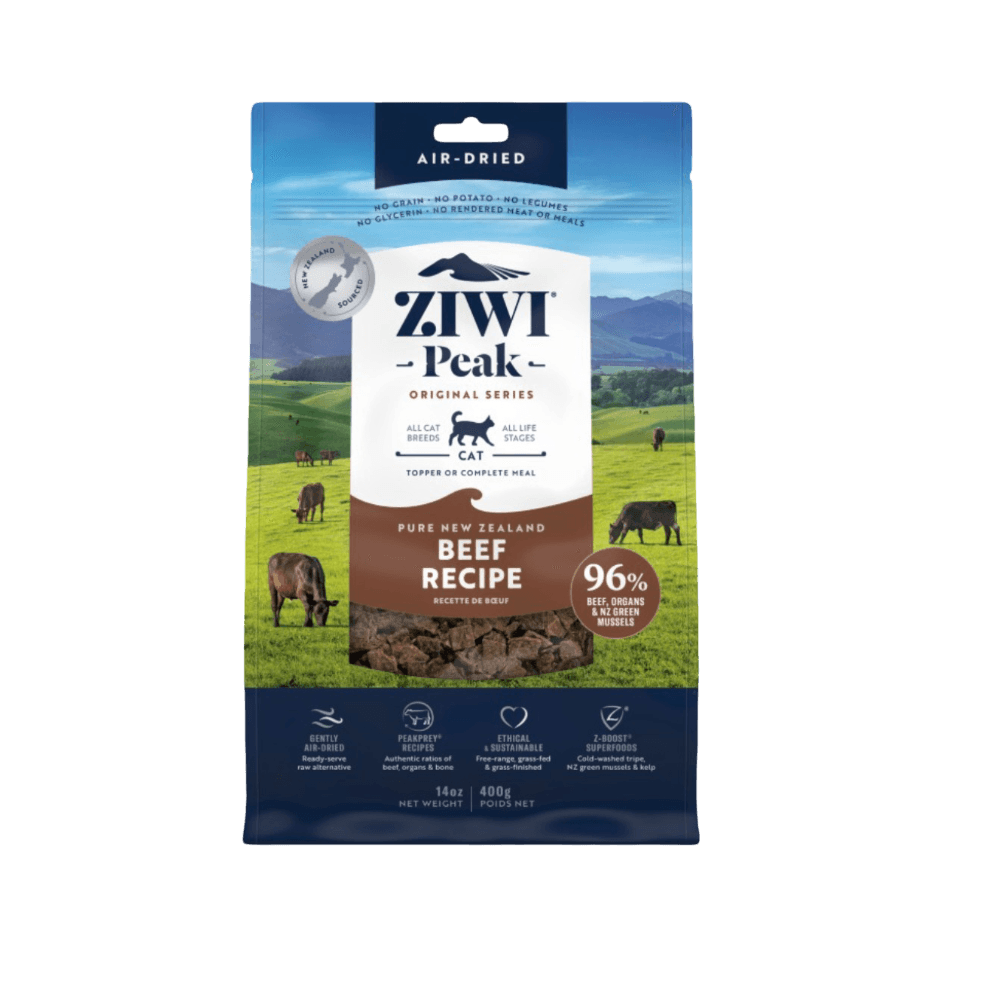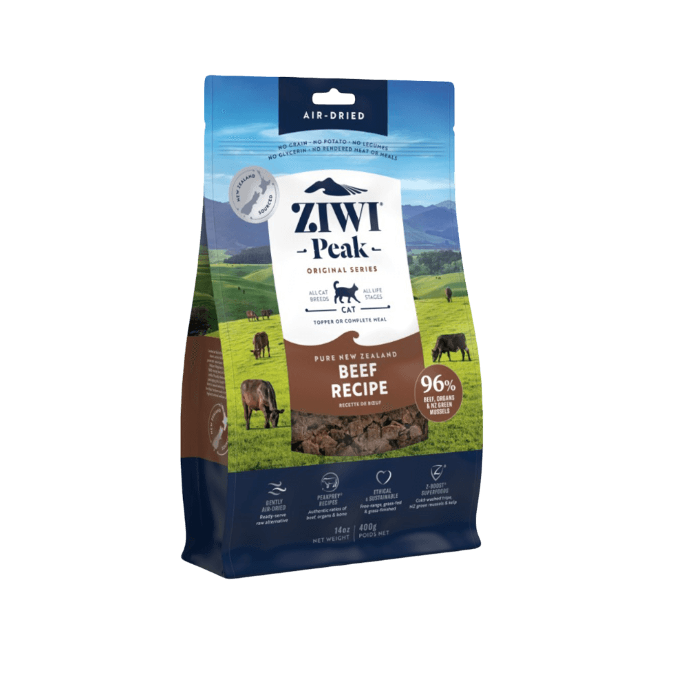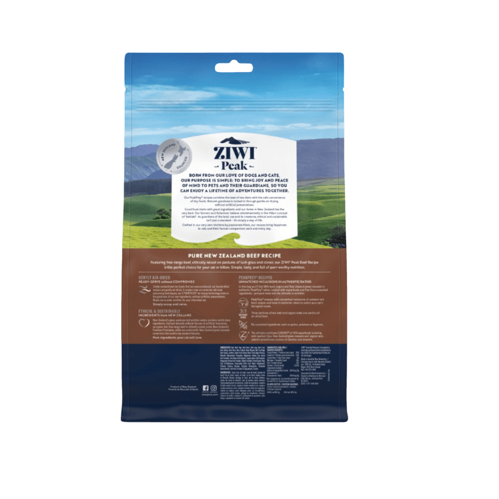 ZIWI Peak Air Dried Beef Recipe Dry Cat Food is a premium, high-protein dry food made with 100% grass-fed beef, offering a nutritious and delicious meal for your cat. Using a gentle air-drying process, this food preserves the natural nutrients and flavours, providing your cat with a balanced diet that supports their overall health, energy levels, and a glossy coat.