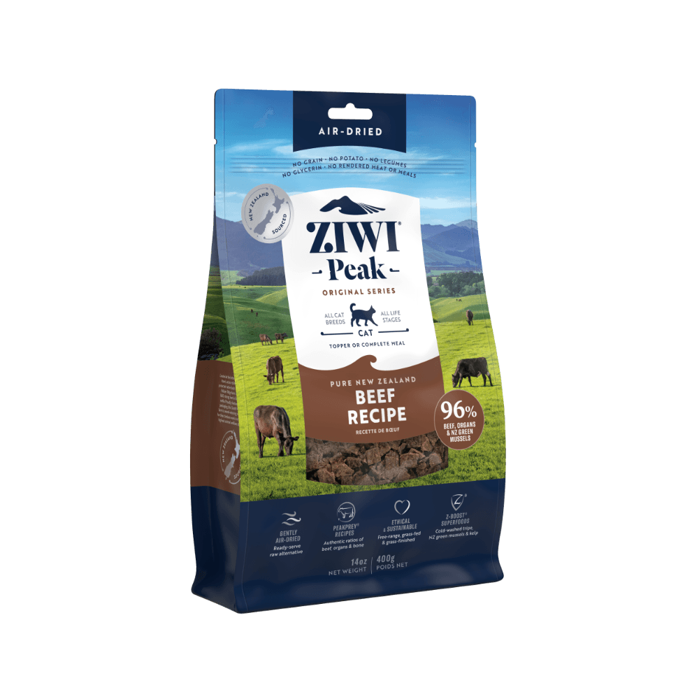 Beef, Beef Tripe, Beef Heart, Beef Lung, Beef Liver, Beef Kidney, Beef Bone, New Zealand Green Mussel, Beef Cartilage, Beef Spleen, Lecithin, Inulin (from Chicory Root), Dried Apple Pomace, Minerals (Dipotassium Phosphate, Magnesium Sulphate, Zinc Amino Acid Complex, Iron mino Acid Complex, Copper Amino Acid Complex, Manganese Amino Acid Complex, Sodium Selenite), Dried Organic Kelp, Salt, DL-Methionine, Preservative (Citric Acid, Mixed Tocopherols), Vitamins (Choline Chloride, Thiamine Mononitrate, Pyridoxine Hydrochloride, Folic Acid, Vitamin D3 Supplement), Taurine.