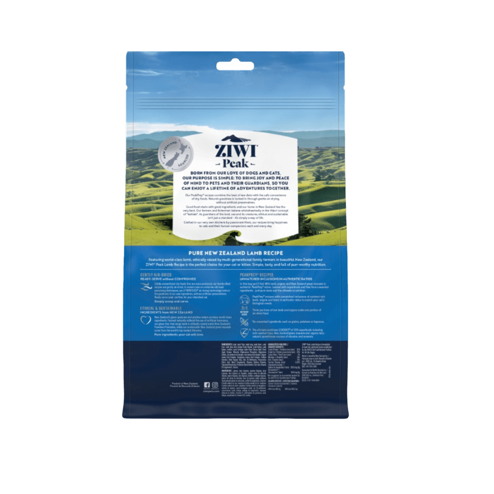 Crafted with care for your feline, the ZIWI Peak Lamb Air Dried Cat Food provides a nutritious, moisture-rich diet that mimics the natural prey diet of carnivorous cats. Using unique air-drying, it locks in goodness from 96% lamb & green mussels. Ideal for all life stages, supporting overall health for discerning cats.