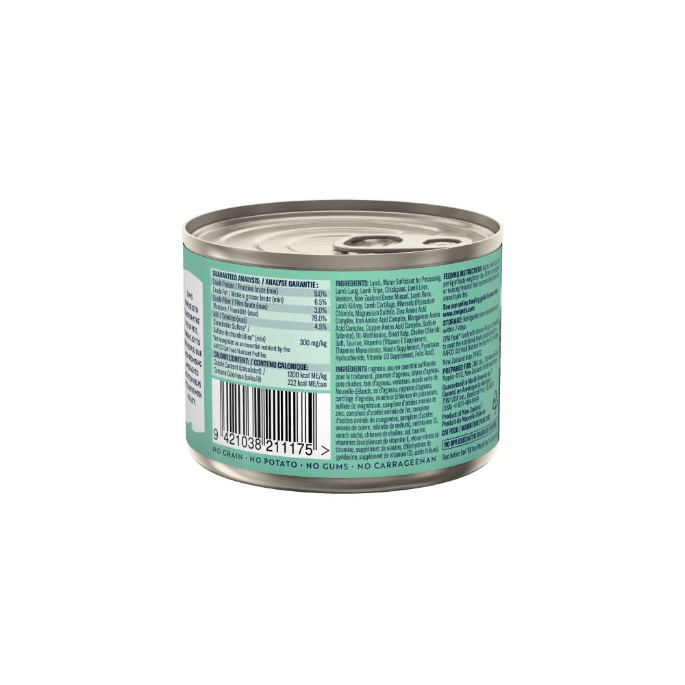 The ZIWI Peak Lamb with Venison for cats is a moisture-rich pate featuring a blend of 92% free-range New Zealand lamb and venison, organs, and bone. This recipe is ethically sourced and crafted to mirror a whole-prey diet, providing your cat with a complete and biologically appropriate meal.