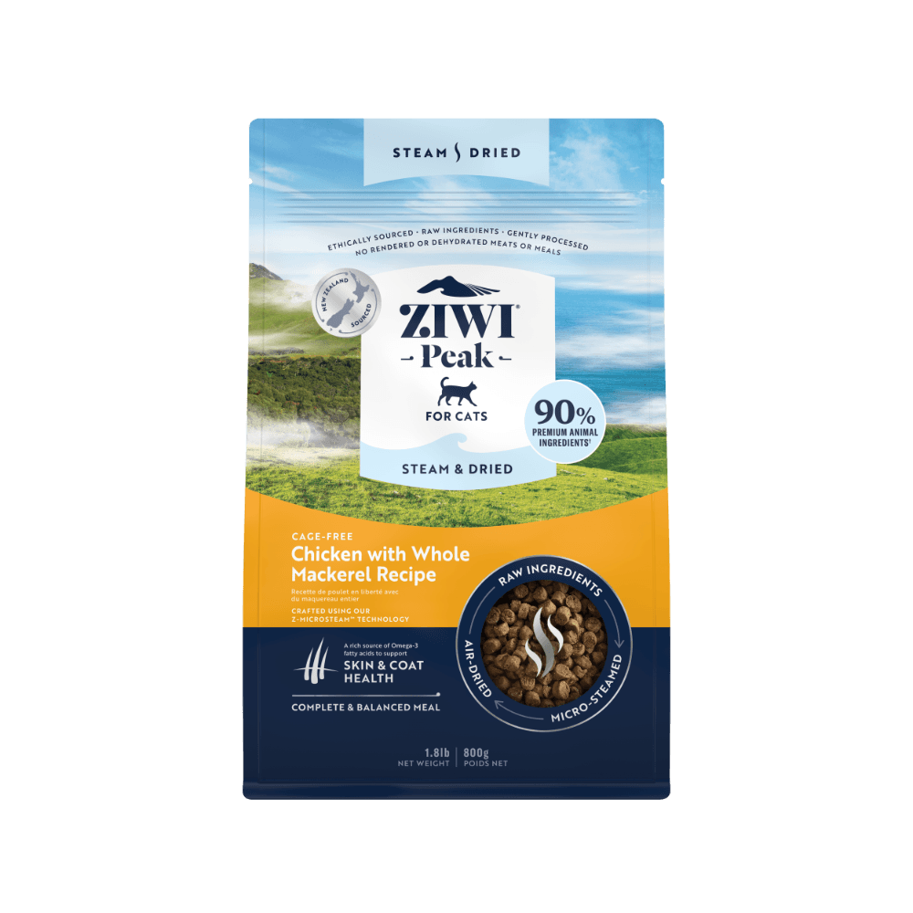 Chicken, Chicken Liver, Chicken Necks, Whole Mackerel, Chicken Bone (Source of Glucosamine and Chondroitin Sulfate), Dried Egg White, Dried Yellow Peas, Dried Green Lentils, Chicken Fat, Dried Quinoa, Dried Apple Pomace, Chicken Cartilage, Natural Flavour, Chicken Heart, Choline Chloride, Minerals (Dipotassium Phosphate, Magnesium Sulfate, Zinc Amino Acid Complex, Iron Amino Acid Complex, Copper Amino Acid Complex, Manganese Amino Acid Complex), Preservative (Citric Acid, Mixed Tocopherols), Dried Kelp, Taurine, Vitamins (Vitamin E Supplement, Niacin Supplement, Thiamine Mononitrate, Pyridoxine Hydrochloride, Calcium Pantothenate, Folic Acid, Vitamin D3 Supplement), Rosemary Extract.
