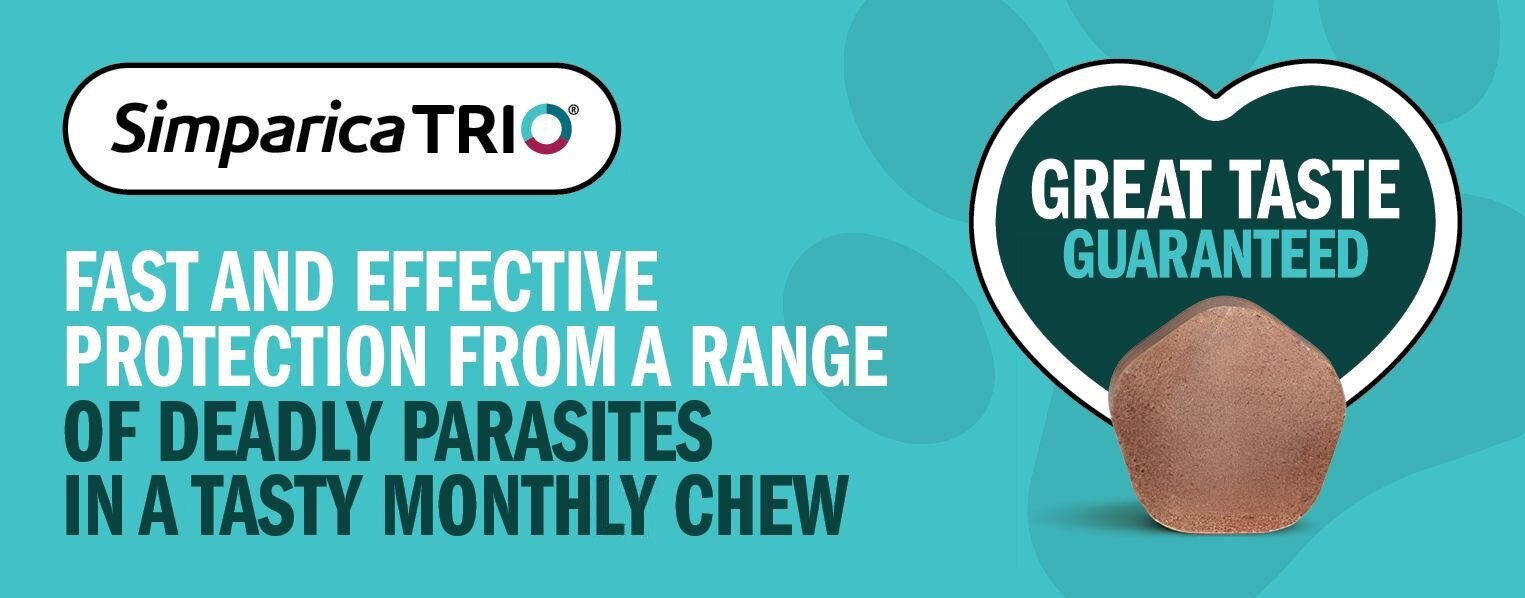 Give your dog complete peace of mind with Simparica Trio, the all-in-one monthly chew that protects against fleas, ticks, heartworm, and intestinal worms. Trusted by vets worldwide, Simparica Trio delivers fast-acting, broad-spectrum parasite protection for puppies and dogs from 8 weeks of age and 1.25kg in weight.